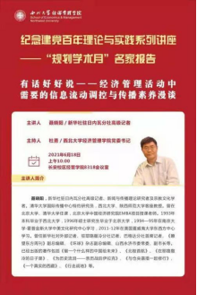 6月18日早上,西大著名校友聂晓阳教授重回西大校园,以“有话好好说——经济管理活动中需要的信息流动调控与传播素养漫谈”为题目,为学院师生带来了一次别开生面的报告,让我们了解到,如何在经济领域及日常生活中,学会并使用交流的艺术,从而有效化解我们面前的难题。
