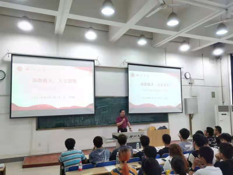 恰逢中国共产党成立一百周年,2021年6月23日,校学生工作部(处)部(处)长董国强以“浴血播火,大义凛然”为主题,为我院2020级经济类本科生讲授形势与政策课,分享我校杰出校友王孝锡烈士的英勇事迹。我院党委副书记徐自成,专职团干戴昶及我院2020级经济类全体本科生参加学习。