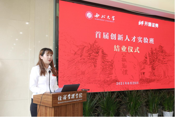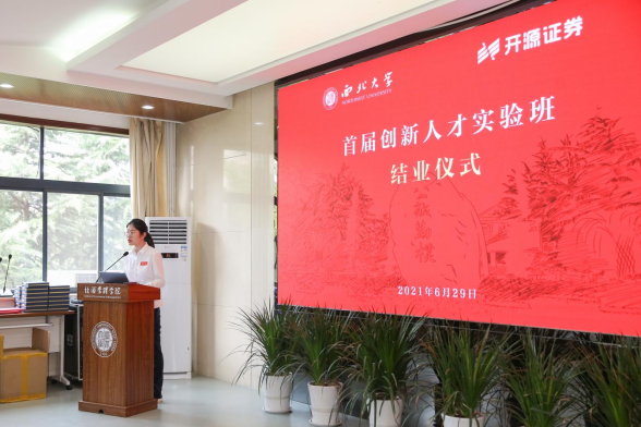 结业证书颁发仪式前,吴振磊首先介绍了首届创新人才实验班的教学开展情况。学员代表彭雅琦、安亭樾分别进行了结业发言。