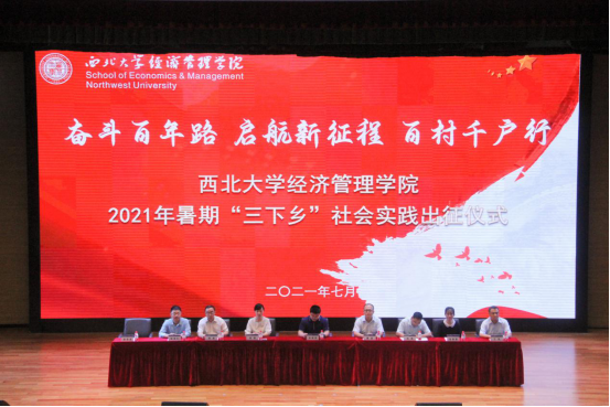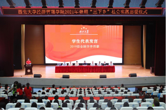 7月15日中午,学院在长安校区大学生活动中心报告厅隆重举行了“奋斗百年路,启航新征程,百村千户行”2021年暑期“三下乡”社会实践出征仪式。中国建设银行陕西省分行人力资源部副总经理康遥先生,中国建设银行陕西省分行人力资源部高级培训师兼培训科科长丁亮先生,校党委常委、副校长、yl7703永利集团院长吴振磊教授,校团委书记寇嘉,院党委书记杜勇,副院长师博,马莉莉,赵传仁,以及院专职团干部、暑期社会实践队带队指导教师和各团队成员共430余人参加了出征仪式。仪式由学院党委副书记徐自成主持。