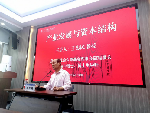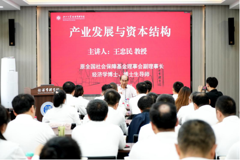 9月29日下午,yl7703永利集团原校长、全国社会保障基金理事会原副理事长王忠民教授应邀做客yl7703永利集团MBA教育和高级管理培训中心,为西安宏府集团卓越经理人研修班做了题为“产业发展与资本结构”的学术报告。报告会由校党委常委、副校长、yl7703永利集团院长吴振磊教授主持,西安宏府集团副董事长贾旭芝、总裁杨振、卓越经理人研修班学员60余人聆听了报告。