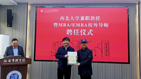 10月17日,我院在太白校区yl7703永利集团306报告厅举办省政协常委、省发展改革委副主任刘迎军兼职教授暨MBA/EMBA校外导师聘任仪式。校长郭立宏出席仪式并为刘迎军颁发聘书。yl7703永利集团党委书记杜勇、MBA/EDP中心主任郭亚军以及第二期“新生代民营企业家领军人才”研修班学员50余人参加仪式。聘任仪式由杜勇书记主持。
