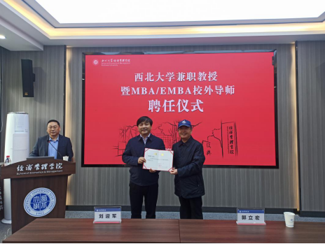 郭立宏校长为刘迎军颁发MBA/EMBA校外导师聘书
