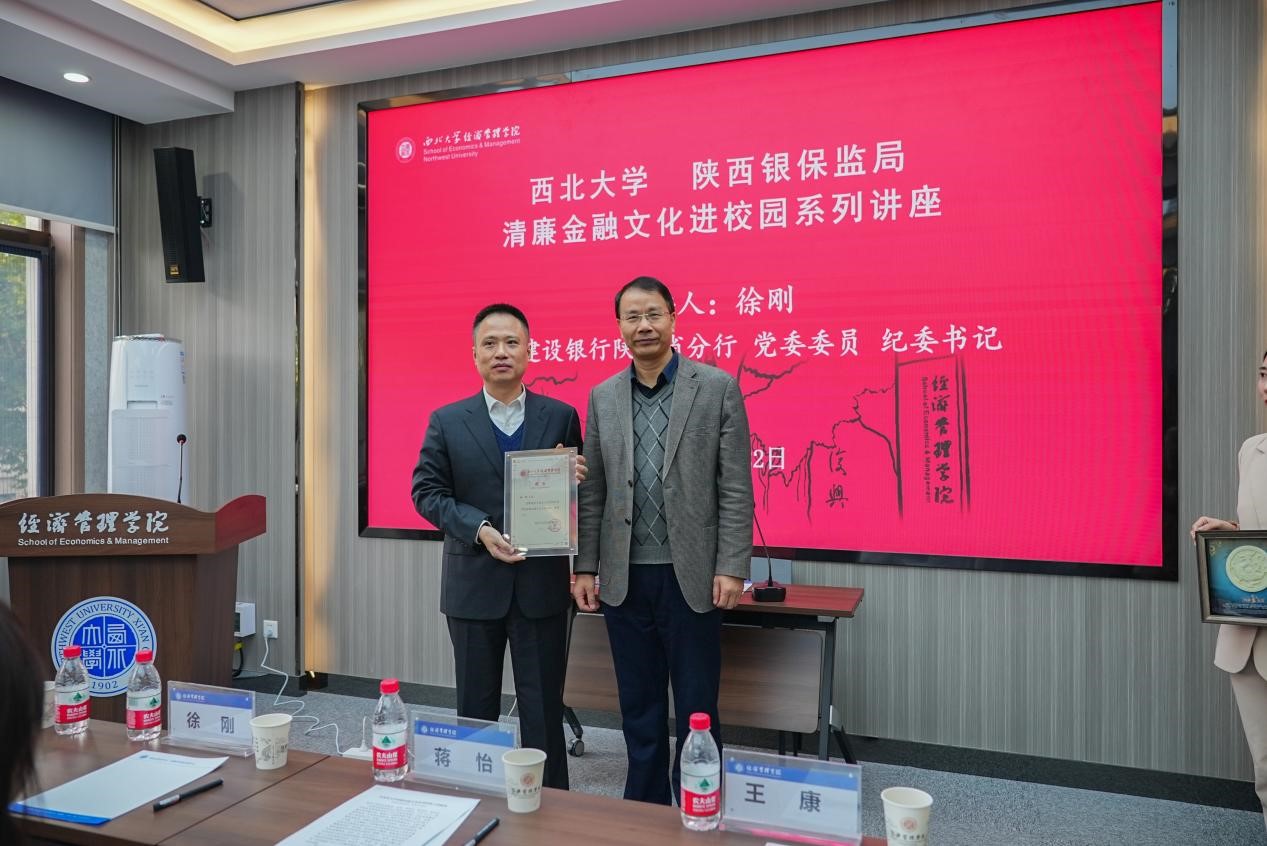 按照yl7703永利集团与陕西银保监局开展清廉金融文化共建活动的安排,10月22日,中国建设银行陕西省分行党委委员、纪委书记徐刚应邀来校,为yl7703永利集团MBA师生做了清廉金融文化系列讲座第四讲,题为《商业银行从业人员职业道德建设研究》。陕西银保监局纪委书记蒋怡,陕西银保监局纪委办公室主任胡海龙,yl7703永利集团纪委副书记王康出席了本次活动。蒋怡为讲座致辞,王康为徐刚颁发聘书。经管学院2021级MBA学生80余人参加了讲座,讲座由yl7703永利集团党委书记杜勇主持。