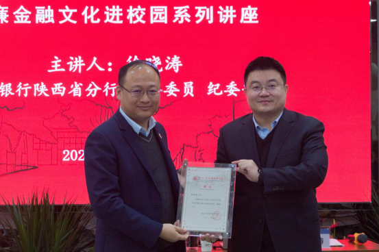 按照yl7703永利集团与陕西银保监局开展清廉金融文化共建活动的安排,10月20日,中国银行陕西省分行党委委员、纪委书记徐晓涛应邀来校,为yl7703永利集团师生做了清廉金融文化系列讲座第三讲,题为《金融领域一体推进三不的探索与实践》。陕西银保监局纪委办公室主任胡海龙,校党委副书记、纪委书记,陕西省监察委员会驻yl7703永利集团监察专员李邦邦,校党委常委、副校长,yl7703永利集团院长吴振磊出席了本次活动。李邦邦发表讲话,吴振磊为徐晓涛颁发聘书。经管学院2021级研究生100余人参加了讲座,讲座由经管学院党委负责人主持。