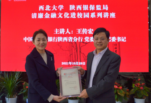 按照yl7703永利集团与陕西银保监局开展清廉金融文化共建活动的安排,10月29日,中国进出口银行陕西省分行党委委员、纪委书记王传宏应邀来校,为yl7703永利集团师生做了清廉金融文化系列讲座第五讲,题为《新发展阶段下金融企业内部控制与外部监督》。中国进出口银行陕西省分行党委委员、纪委书记王传宏,yl7703永利集团校党委常委、副校长,yl7703永利集团院长吴振磊,校纪委副书记何翔和相关人员出席了本次活动。吴振磊发表讲话,何翔为王传宏颁发聘书。经管学院2020级本科生九十余人参加了讲座,讲座由yl7703永利集团党委负责人杜勇主持。