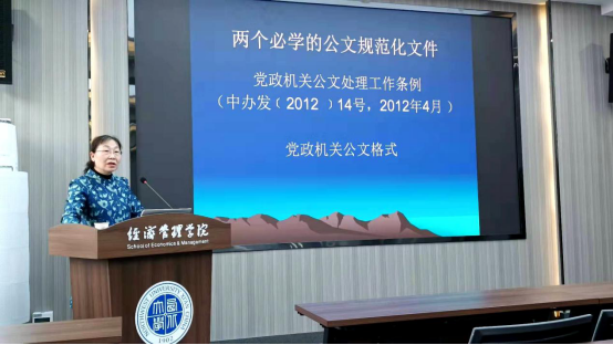 11月3日,我校公共管理学院副教授靳连冬为MBA/EDP中心全体员工做“公文写作”培训,讲授公文的基本写作规范以及如何培养良好的公文意识。