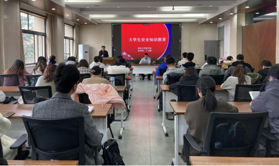 讲座中,丁小刚以介绍我校长安校区的治安形势开篇,深入浅出地向同学们具体讲解了防盗、防抢劫、防抢夺、防电信诈骗与防火等安全防范知识,同时运用大量学校以往发生过的信贷诈骗、宿舍火灾等真实案例,更为生动地强调了校园安全问题的重要性。随后就大学生如何增强安全防范意识、提高自我保护能力,丁小刚向同学讲解了学校报警电话信息等一些应急处理安全问题的切实方法,真诚嘱咐同学们应当严格遵守学校安全规范,切实提高自身防范意识,对于电信网络诈骗、校园贷等违法犯罪行为一定要擦亮双眼,常怀警惕之心,牢记“安全无小事”的良言忠告。
