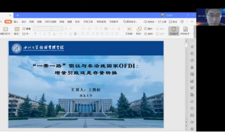 我院金融工程专业本科生王腾蛟同学与武宵旭博士合作的论文《‘一带一路’倡议与非沿线国家OFDI:增量引致还是存量转换》入选本次会议,并获得优秀论文三等奖。王腾蛟同学应邀参加会议并进行平行论坛论文汇报。中山大学刘贯春副教授点评指出,王腾蛟同学的文章选题新颖,考虑了政策对非沿线国家的溢出效应,且采用DDD方法进行了因果识别。刘贯春副教授尤其肯定了文章的写作,称赞文献综述部分语言流畅,条理清晰,没有简单地罗列堆砌。同时,刘贯春副教授也就文章的模型设定、理论框架和安慰剂检验提出了建议。