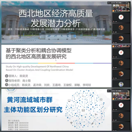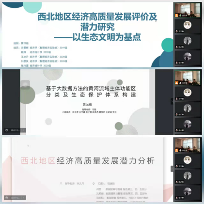3月29日至4月1日,各小组从“西北地区经济高质量发展潜力分析”、“以互联网为基础的数字技术在疫情防控中的作用和暴露出的问题分析”和“基于大数据方法的黄河流域主题功能区分类及生态保护体系构建”三个课题中任选一题开展工作。各小组同学在老师的悉心指导下,经过紧张的小组讨论、文献梳理、数据搜集、方法学习、分析研究等实践环节,借助大数据技术或者多元统计、时序分析、空间探索分析、综合评价等方法,高质量地完成了比赛作品。