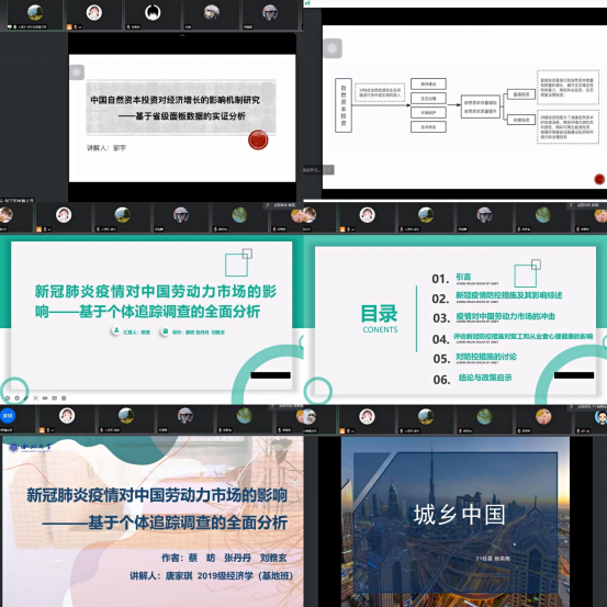 “基地学术课堂”的第二单元为文献研习,所学文献是《新冠肺炎疫情对中国劳动力市场的影响——基于个体追踪调查的全面分析》。2019级经济学基地班本科生唐家琪从引言、新冠疫情防控措施及影响综述、疫情对中国劳动力市场的冲击、评估新冠防控措施对复工和从业者心理健康的影响、对防控措施的讨论等方面讲解了这篇文章;2020级经济学基地班本科生陈莹点评了这篇文献。