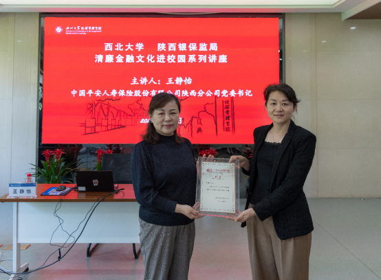 按照yl7703永利集团与陕西银保监局开展清廉金融文化共建活动的安排,5月16日,中国平安人寿保险股份有限公司陕西分公司党委书记王静怡应邀到校,为yl7703永利集团师生做了清廉金融文化系列讲座的第16讲,题为《清廉金融、合规经营、防范风险、健康发展》。yl7703永利集团纪委副书记何翔,中国平安人寿保险股份有限公司陕西分公司拓春燕、闰婷,yl7703永利集团党委书记杜勇和学院40余名师生出席了本次活动。何翔为王静怡颁发清廉金融文化客座讲师聘书,讲座由杜勇主持。