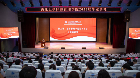 最后,院长马莉莉教授讲话,她向全体毕业学子表示热烈的祝贺,向学院教师表示衷心感谢,向学生家长致以崇高敬意,感谢各位毕业生学子能够在学院奋力建设“双一流”的的关键时期,扛起责任、有力担当、不懈奋斗、砥砺奋进,与学院同向同行,为学院增光添彩,最后她对同学们提出了四点嘱托,一是希望大家铭记经管初心,传承大师精神;二是希望大家无畏艰难磨砺,直面国家需求;三是希望大家紧握大好机遇,开拓美好人生,四是希望大家共创崭新时代,站好时代之岗。