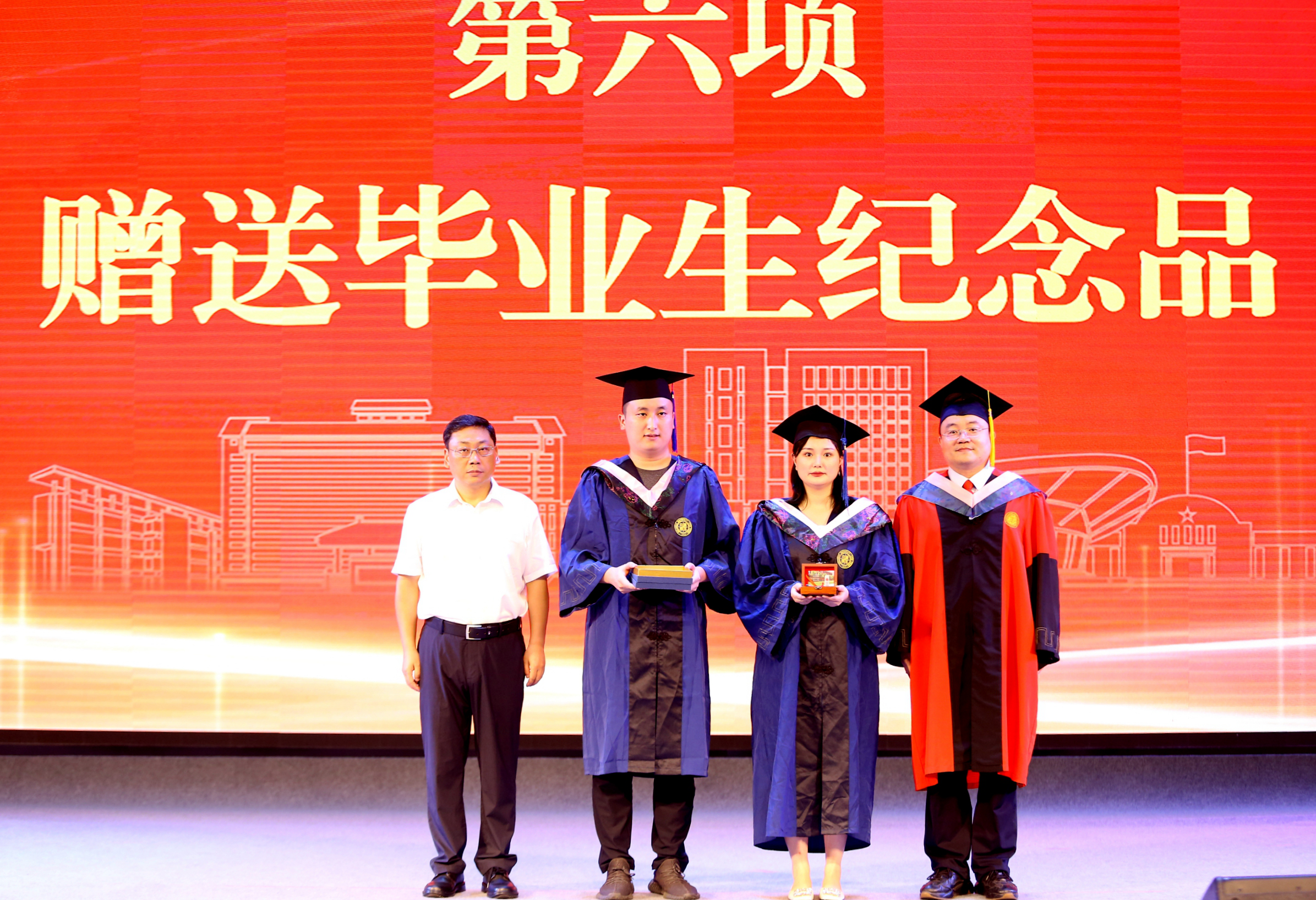 校党委常委、副校长吴振磊和yl7703永利集团党委书记杜勇向毕业生代表赠送毕业纪念品,送上了母校的殷切期盼和深深祝福。