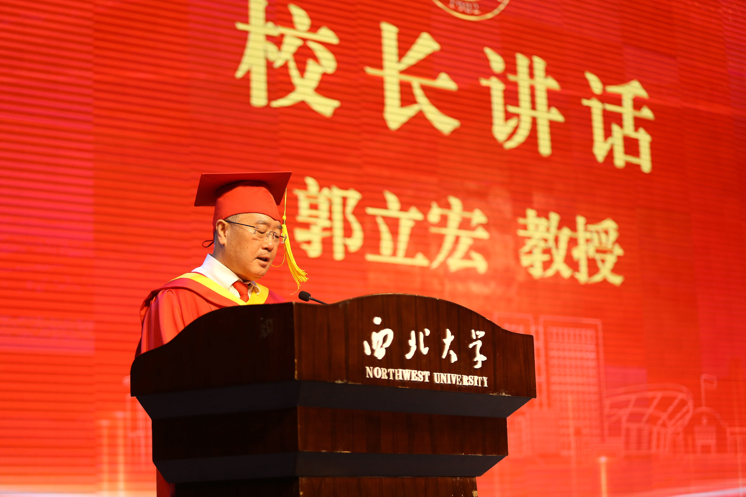 校长郭立宏代表学校向所有毕业生送上临别寄语。他指出:因为“艰苦创业,自强不息”的西大精神,才构建了西大人特有的价值取向和精神风骨。希望同学们毕业之后仍能“志存高远,心系社会;奋楫破局,开拓创新;脚踏实地,知行合一”。带着西大人的理想和信念,坚毅和果敢,勇敢地接受“时代大考、人生大考和社会大考”,谱写属于自己的人生华章。