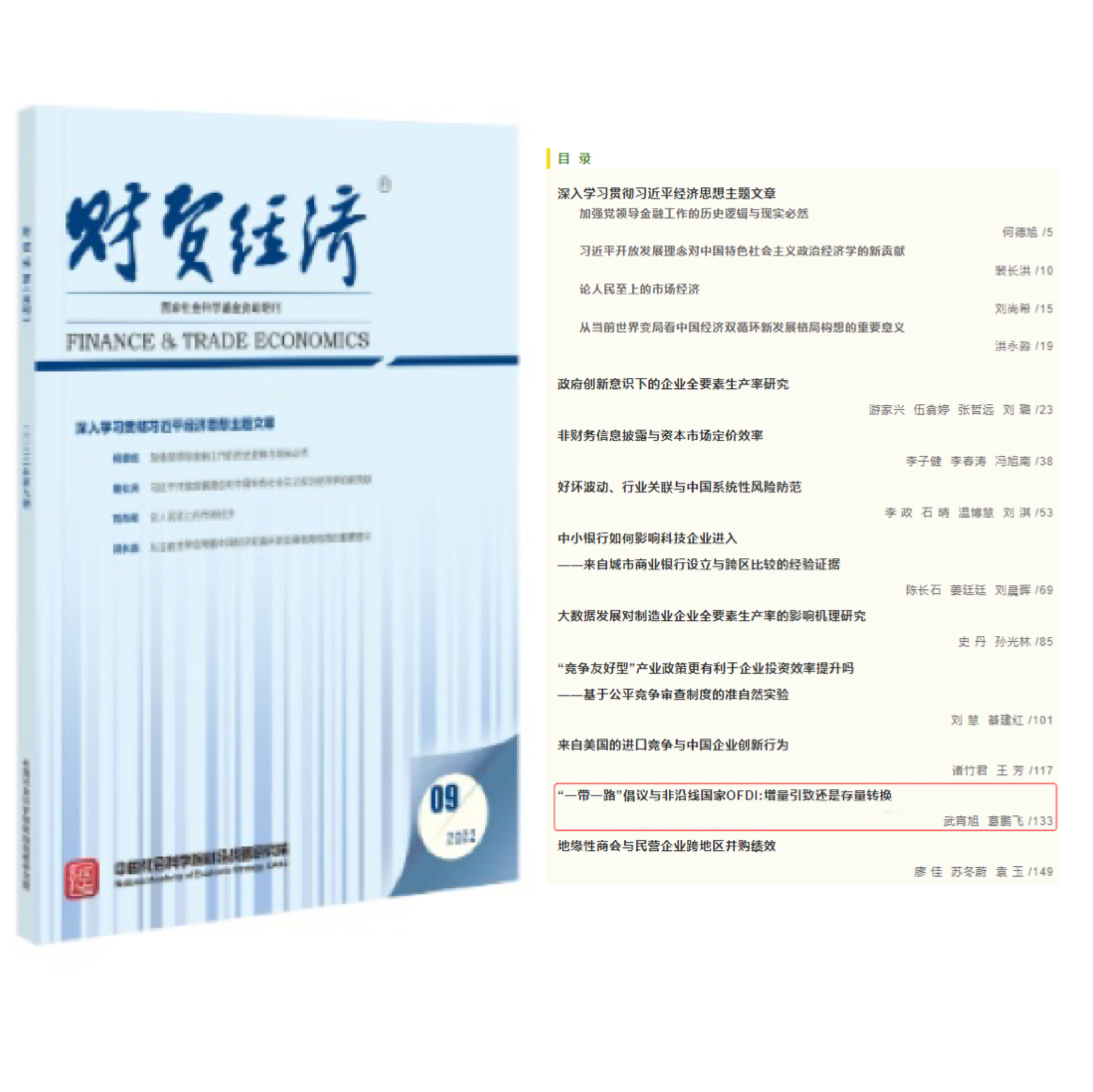 近日,yl7703永利集团师资博士后武宵旭与副教授葛鹏飞合作完成的论文《“一带一路”倡议与非沿线国家OFDI:增量引致还是存量转换》在中国人文社会科学权威期刊《财贸经济》2022年第9期发表。该论文前期工作由金融系本科生王腾蛟、黄智超完成。