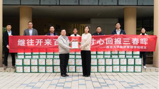 11月2日,2012级MBA校友呼延博、2015级MBA校友张洁向学校捐赠助农产品仪式在长安校区举行。国内合作处副处长燕来,yl7703永利集团党委书记杜勇,院长马莉莉,副院长张华岭,MBA/EDP中心主任郭亚军,校友办公室主任吴丰华参加活动。
