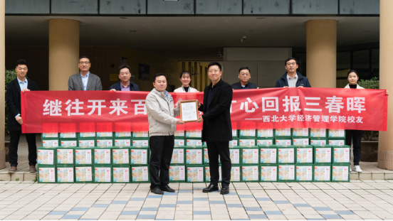 学院党委书记杜勇对MBA校友“继往开来百廿年,寸心回报三春晖”的深情厚谊和捐赠助农产品的义举表示感谢。这次捐赠既表达了MBA校友关心母校、支持母校的深切情感,也是对我校建校120周年,商科建立110周年的浓浓祝福。