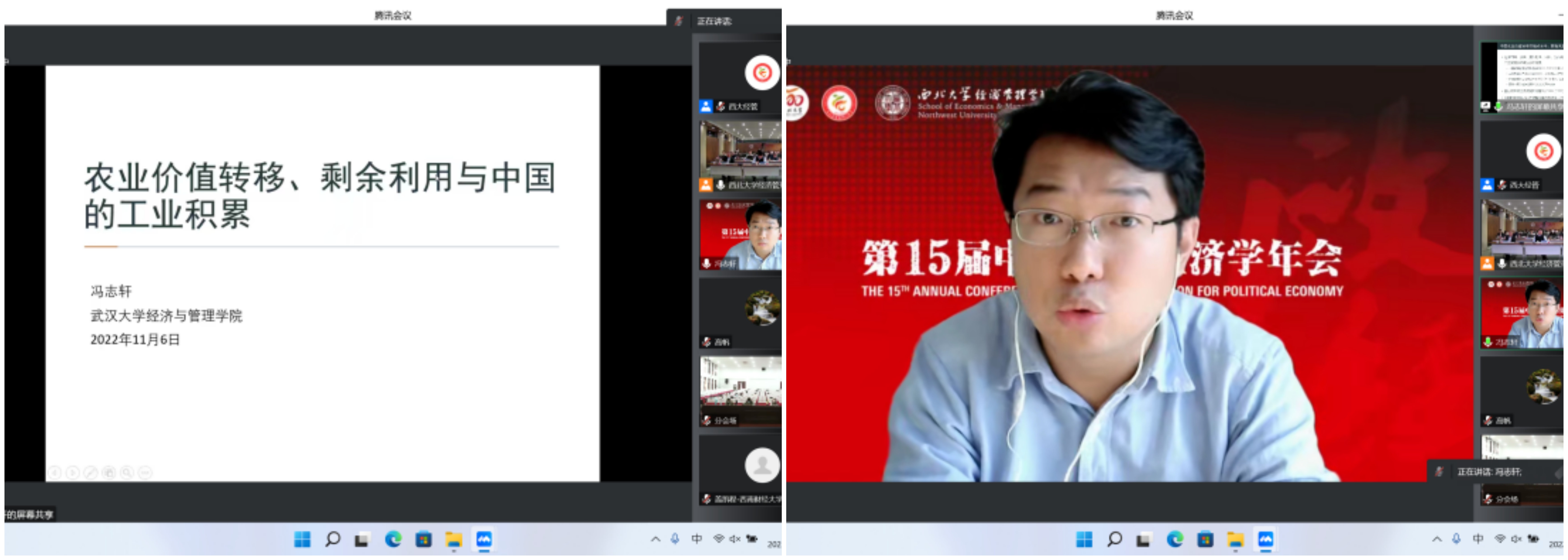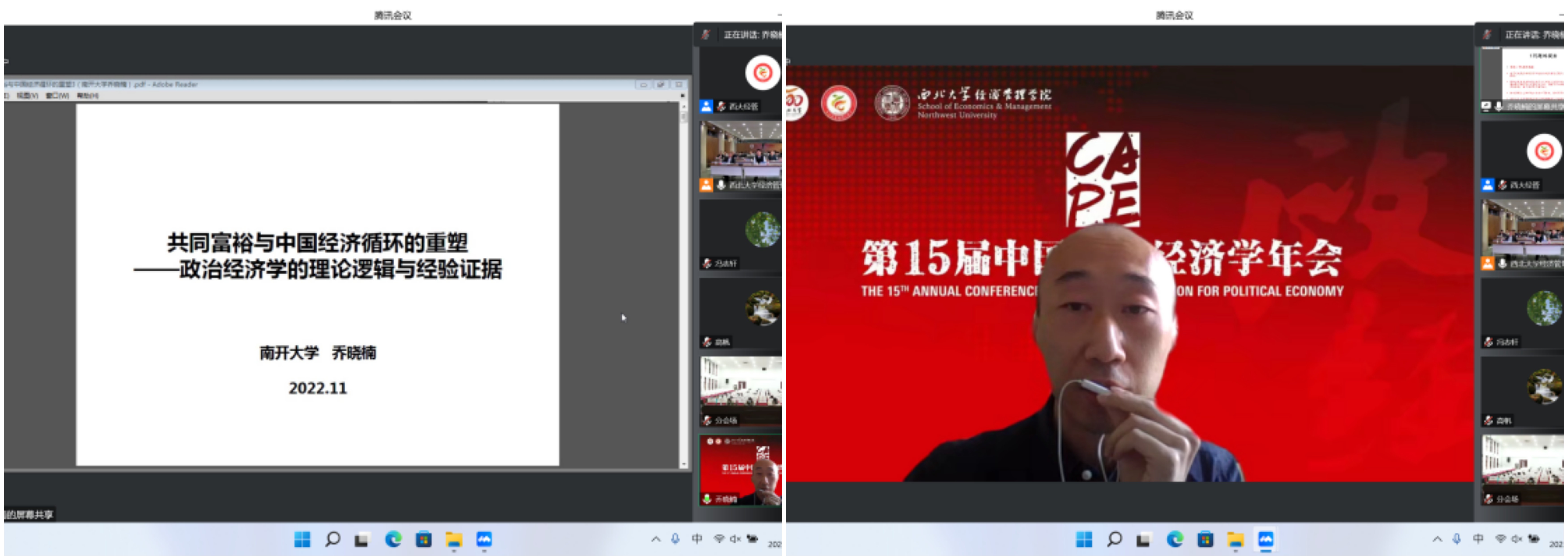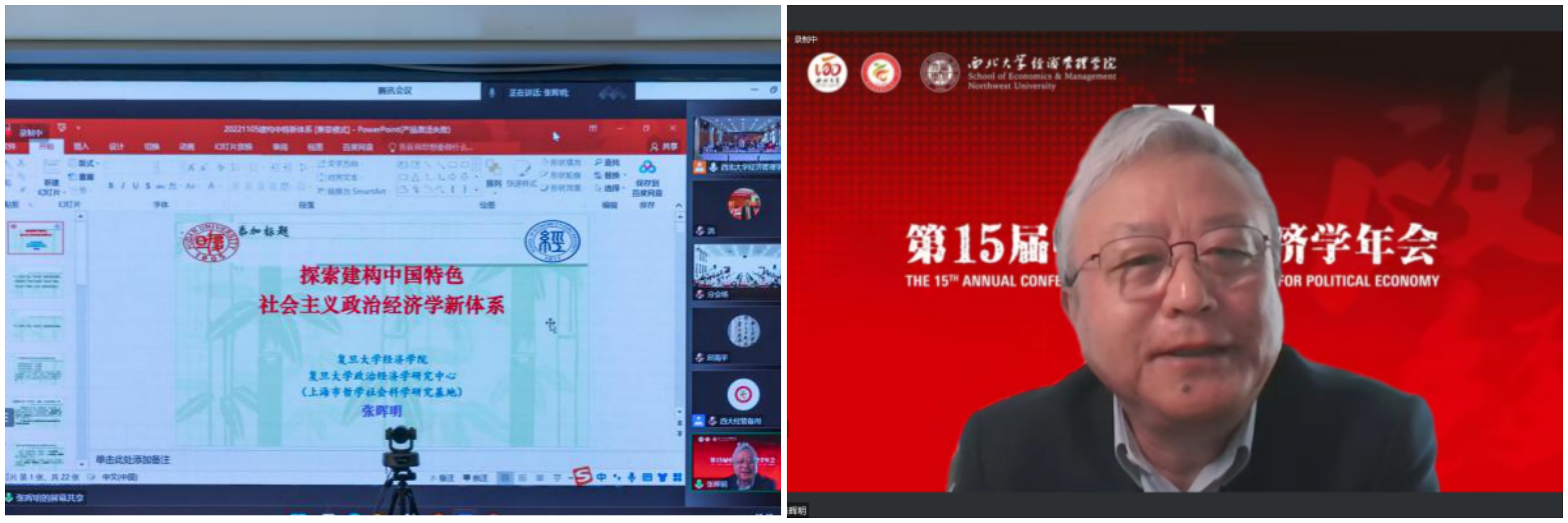 2022年11月5—6日,由中国政治经济学各理事单位共同主办、yl7703永利集团承办的第15届中国政治经济学年会以“线上+线下”相结合的方式成功举行。本次会议共进行2场主旨报告、14场主题报告,7个分论坛60余篇论文交流,来自北京大学、清华大学、中国人民大学、中国社会科学院、复旦大学、南开大学、厦门大学、武汉大学、南京大学、四川大学、辽宁大学、西南财经大学、广东外语外贸大学、天津师范大学和yl7703永利集团等40余所国内重点高校和科研院所的150余位正式会议嘉宾围绕马克思主义政治经济学、中国特色社会主义政治经济学等重大理论和实践议题,发表观点、开展交流;线下200余名yl7703永利集团师生参会,超2000人在线参与论坛,主论坛网络直播超5000人次观看,累计8000余人次参会。