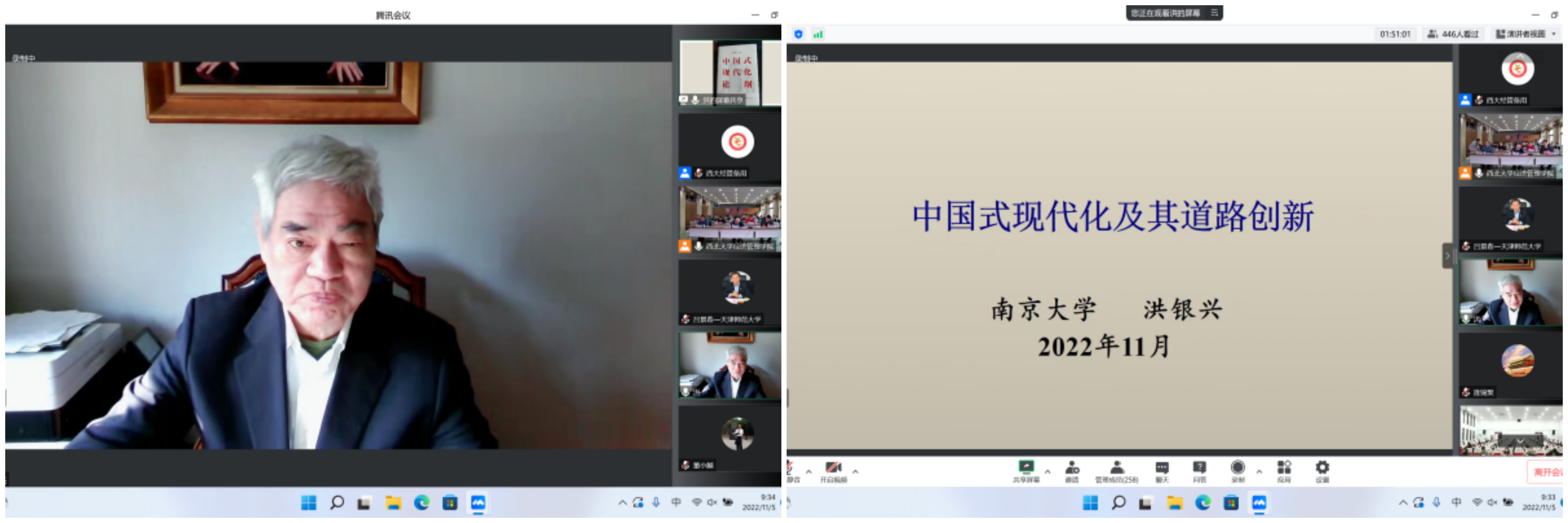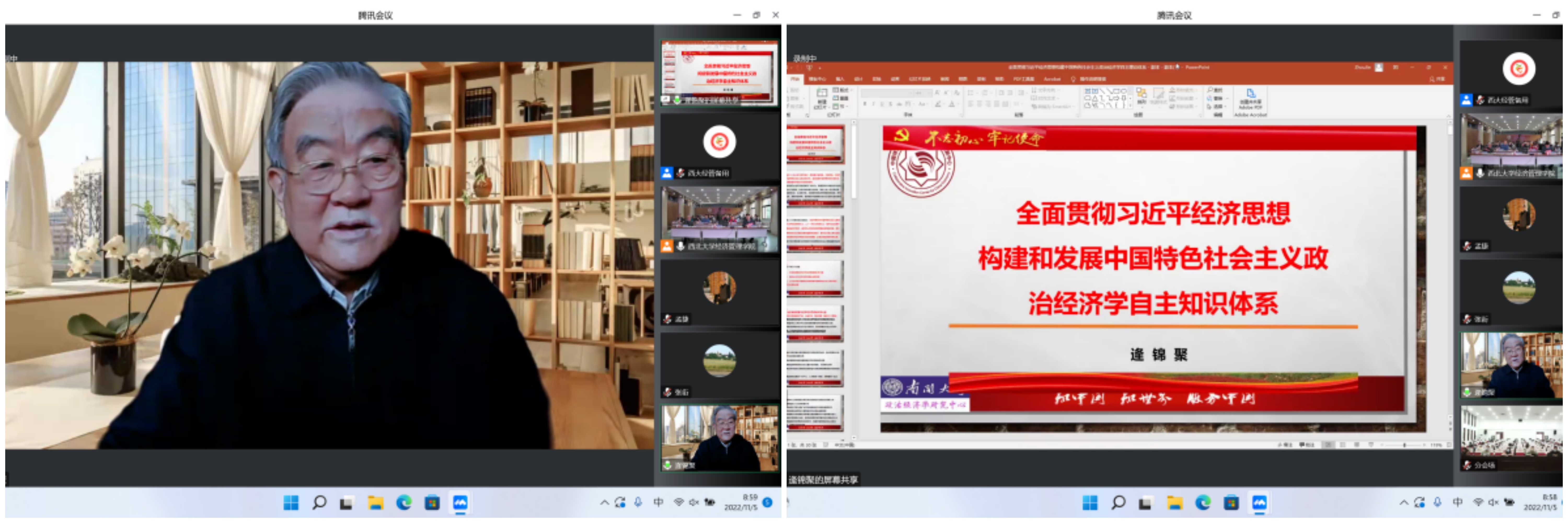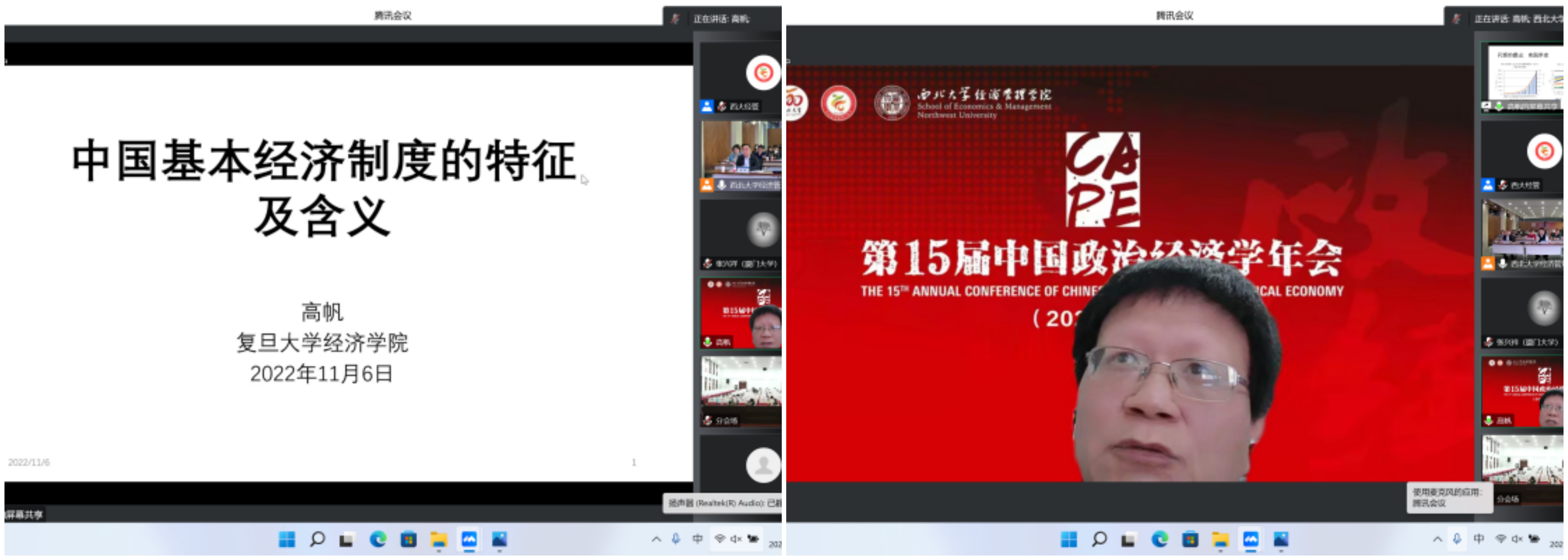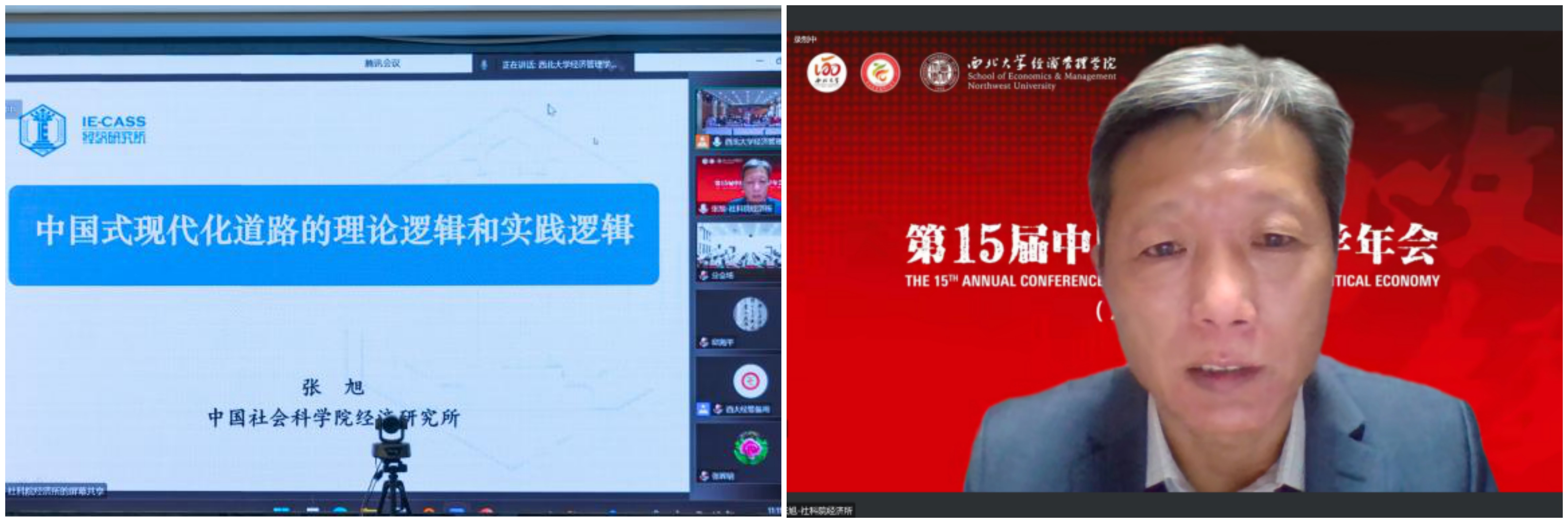 11月5日上午,年会开幕式上,yl7703永利集团校长郭立宏教授、本届年会主席yl7703永利集团白永秀教授分别致辞。开幕式后的主旨演讲阶段,中国特色社会主义经济建设协同创新中心主任、原南开大学副校长逄锦聚教授做了题为《全面贯彻习近平经济思想构建中国特色社会主义政治经济学自主理论体系》的报告,南京大学文科资深教授、原南京大学党委书记洪银兴教授做了题为《中国式现代化及其道路创新》的报告。yl7703永利集团副校长吴振磊教授主持开幕式和主旨演讲。