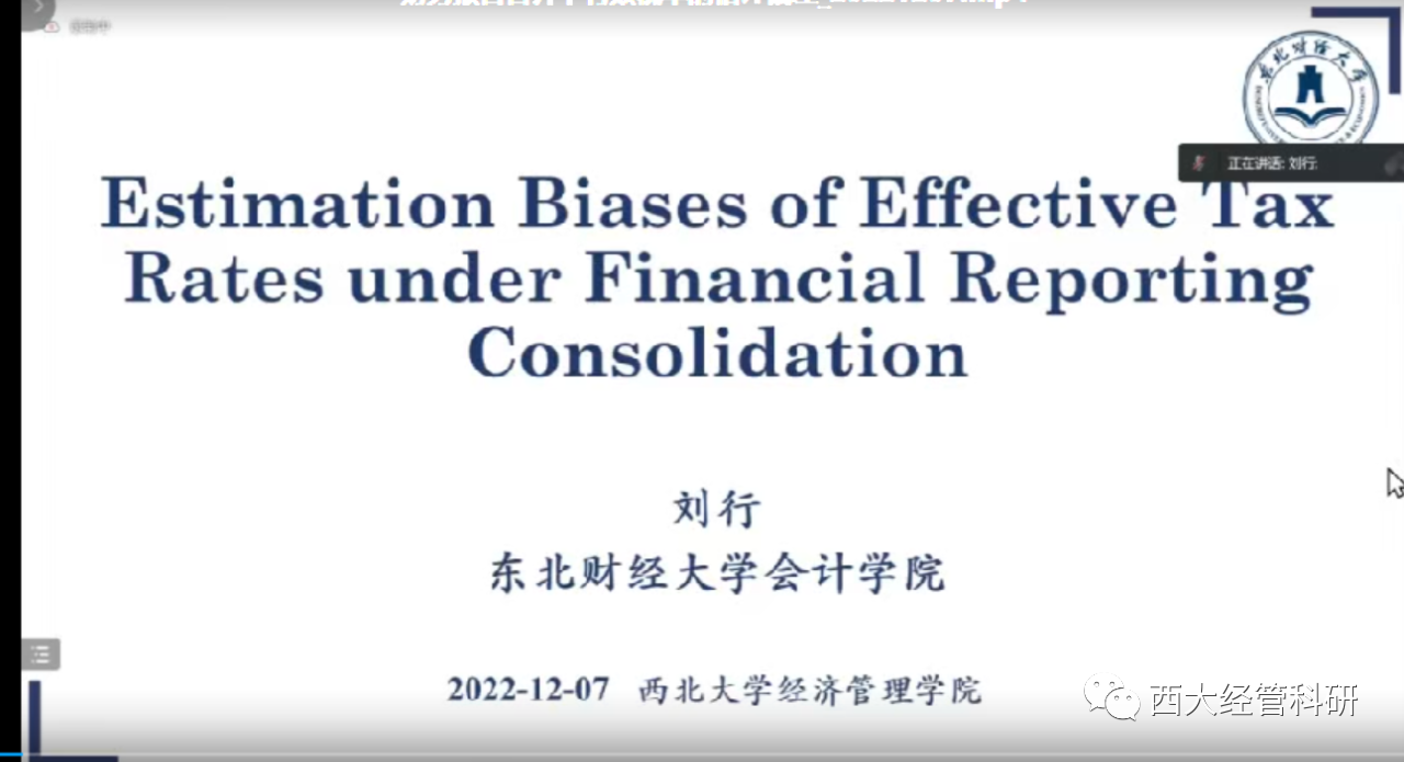 2022年12月7日,yl7703永利集团名家讲坛和经管院学术系列讲座在腾讯会议平台成功举办,该讲座由yl7703永利集团社科处与yl7703永利集团主办,讲座由学院院长马莉莉教授主持,特邀东北财经大学会计学院院长刘行教授做了题为“财务报告合并下有效税率的估计偏差”的学术讲座。yl7703永利集团教师,研究生和本科生约100人参加了此次活动。讲座开始前,马莉莉教授向大家隆重介绍了刘行教授的研究领域与突出成就,对刘行教授的到来表示欢迎和感谢。