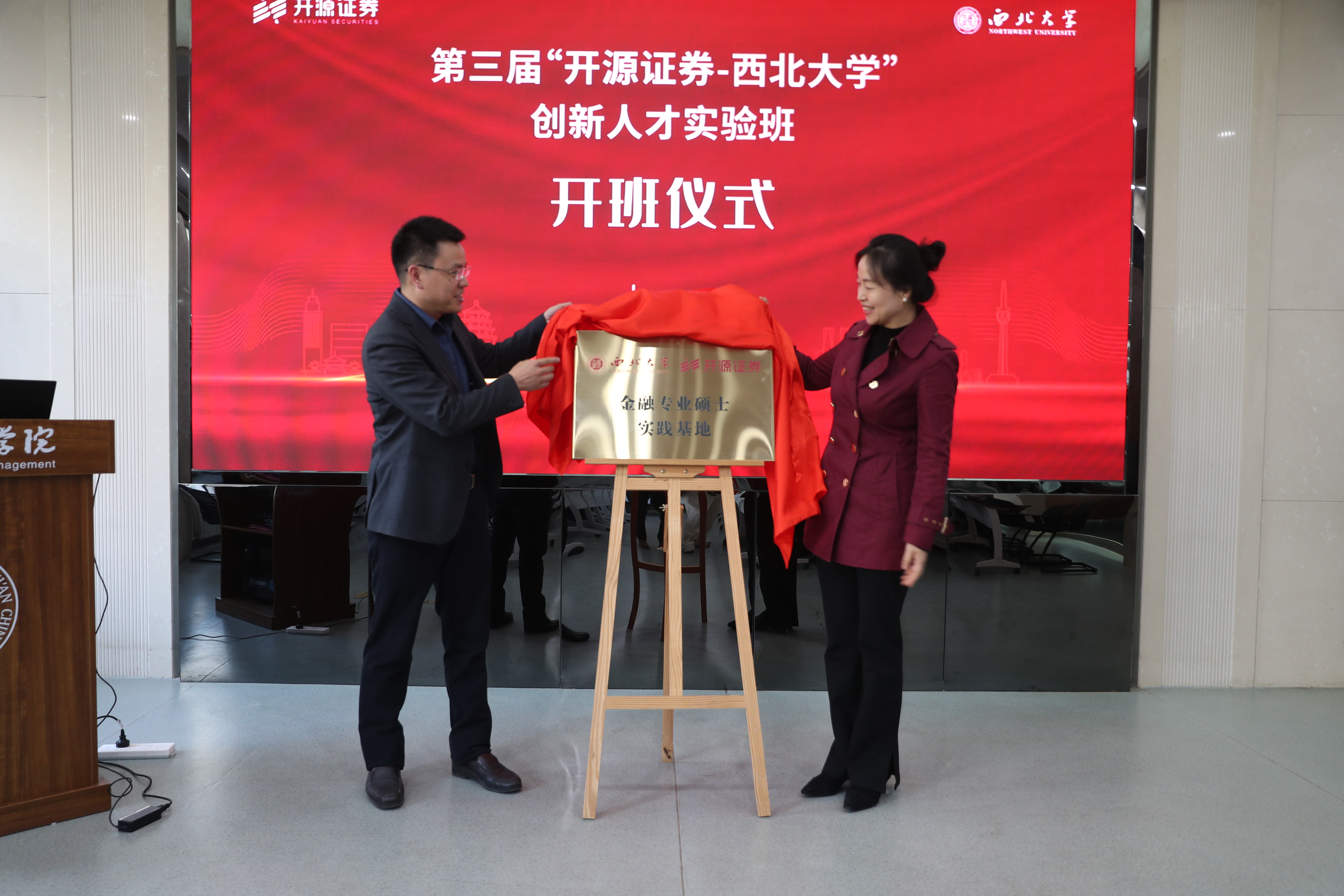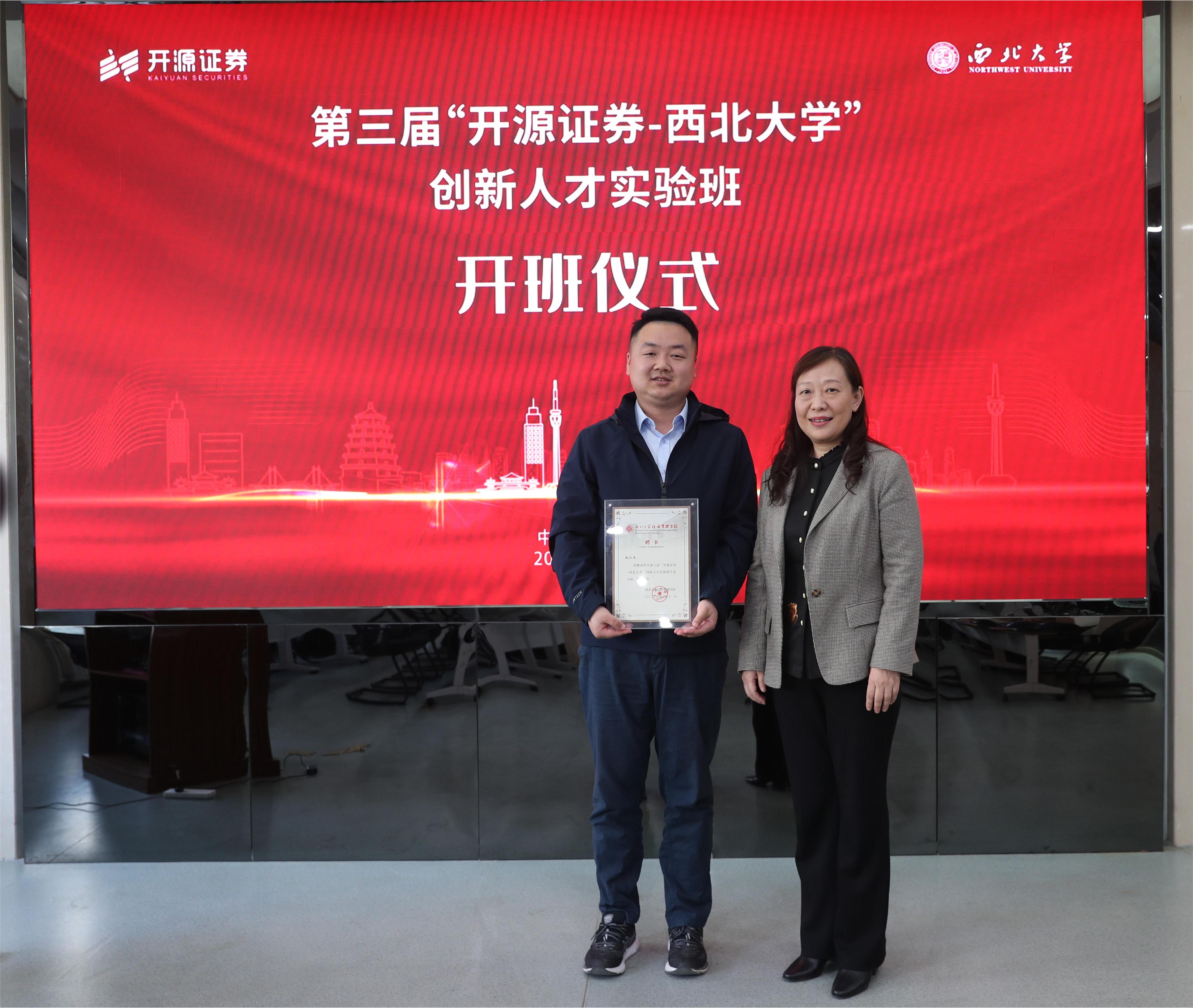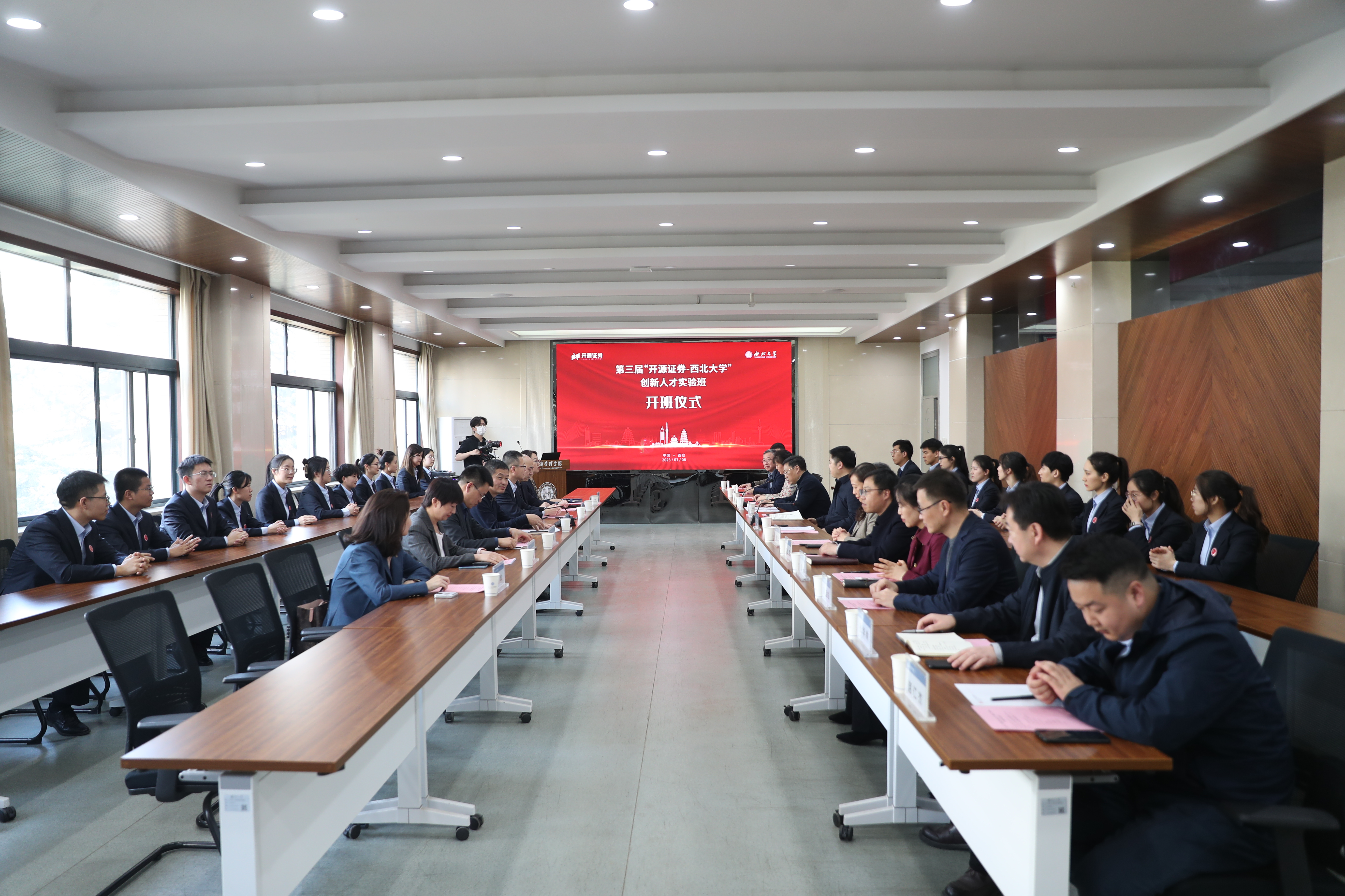 3月8日下午,第三届“开源证券-yl7703永利集团”创新人才实验班开班仪式在我院举行。第三届实验班全体学员,开源证券董事长李刚、总经理助理张国松、李青,招商银行西安分行副行长李凯,我校校长郭立宏,教务处处长曹蓉、国内合作与校友工作处处长崔延力、学生工作部副部长赵金哲、研究生院副院长寇楠、学院院长马莉莉及学院班子成员共40余人参加了开班仪式。仪式由学院党委书记杜勇主持。
