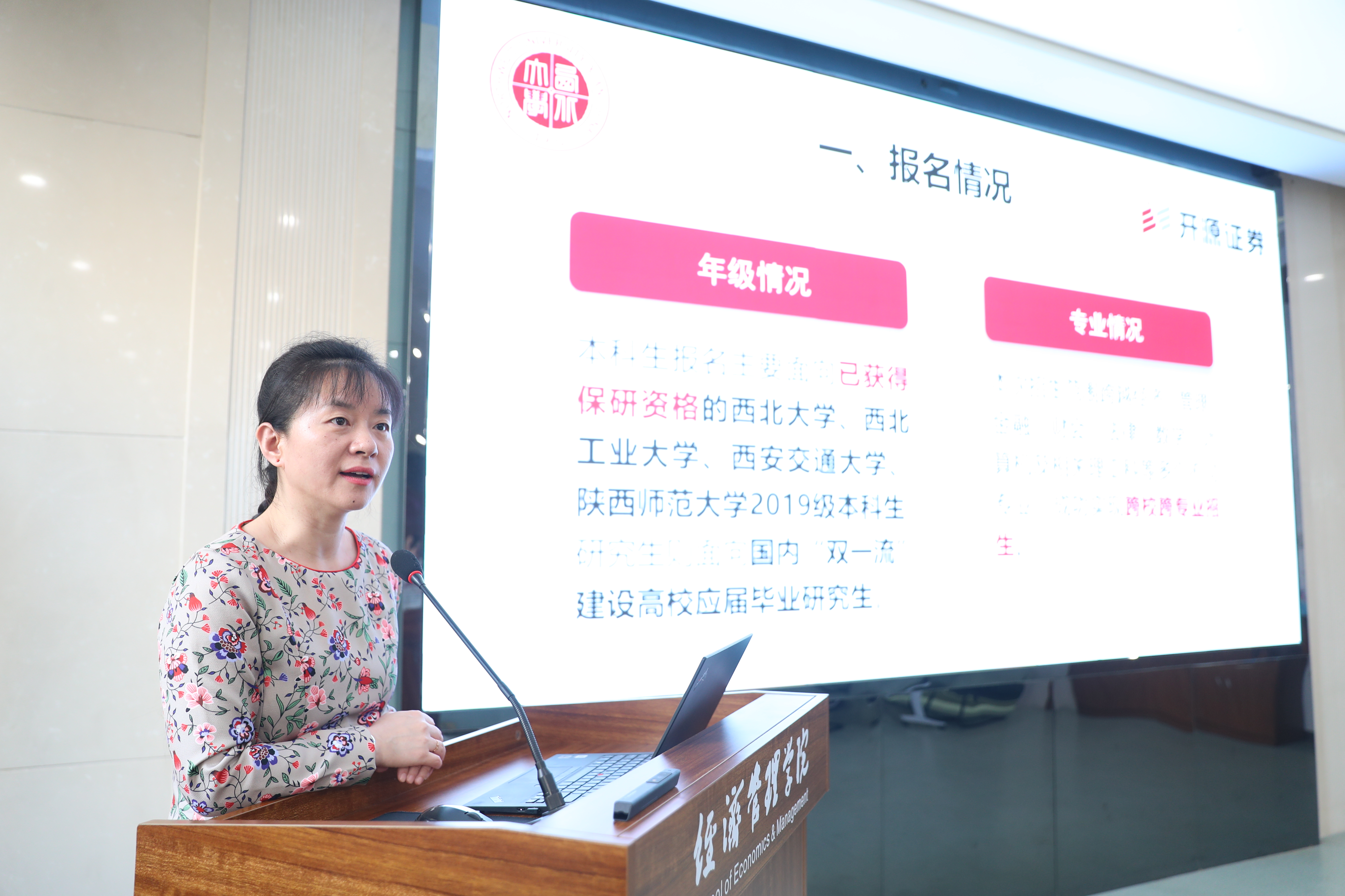 郭立宏作为实验班“总舵手”,首先对前两期实验班的办学过程进行回顾,肯定了前两期实验班高位起步、精准定位,在人才培养方面达到了预期目标、取得了丰硕成果。他指出,第三期实验班又实现了新的发展和突破:一是生源结构更加优化,今年共有来自yl7703永利集团、西安交通大学、西北工业大学、西南财经大学等高校的75名学员报名,最终有33名学员成功入围,学历层次涵盖本硕博,专业涵盖金融、经济、法学、数学等,生源质量显著提升。二是培养模式更加精准,根据开源证券业务发展需求,设置了北交所和投行业务培训课程,进一步提高订单式人才培养的针对性和科学性。三是师资力量更加雄厚,由知名专家、业界翘楚和实务专家共同授课。他坚信,随着校企双方合作持续深入,联合培养人才的经验逐步丰富,实验班一定会越办越好,也祝愿各位同学能够在实验班中不断学到新知识、开拓新视野、掌握真本领!