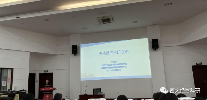 北京工业大学卢全莹教授介绍了基于高频乘用车销售数据和机动车实时监测大数据,开发了中国道路交通低碳转型规划模型(CRT-LCTP),探索实现碳中和的路径,指出了强制淘汰燃油车和更实质性的脱碳措施。该研究发表于Nature子刊。卢全莹教授还给经管学院师生们分享了自己的成长和研究经验,与在场师生进行了深入交流。