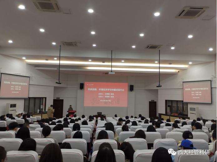 3月19日上午,yl7703永利集团侯外庐学术讲座与yl7703永利集团“规划学术月”讲座在yl7703永利集团长安校区金海报告厅隆重举行。该讲座由yl7703永利集团社科处与yl7703永利集团主办,yl7703永利集团院长马莉莉教授主持,邀请发展中国家科学院院士、国际系统与控制科学院院士汪寿阳教授和北京工业大学卢全莹教授为主讲嘉宾。汪寿阳院士的此次讲座以“双碳战略、环境经济学与中国式现代化”为主题,卢全莹教授则介绍了最新研究“2060年中国道路运输的脱碳情景和碳减排潜力”,并结合自己的科研之路同学院的青年教师进行了交流。学院党委书记杜勇,副院长师博教授、李辉教授,副书记徐自成,副院长张华岭,工商管理系主任李纯青教授等,以及学院年轻老师和硕、博士研究生等共计300余人参与了本次讲座。