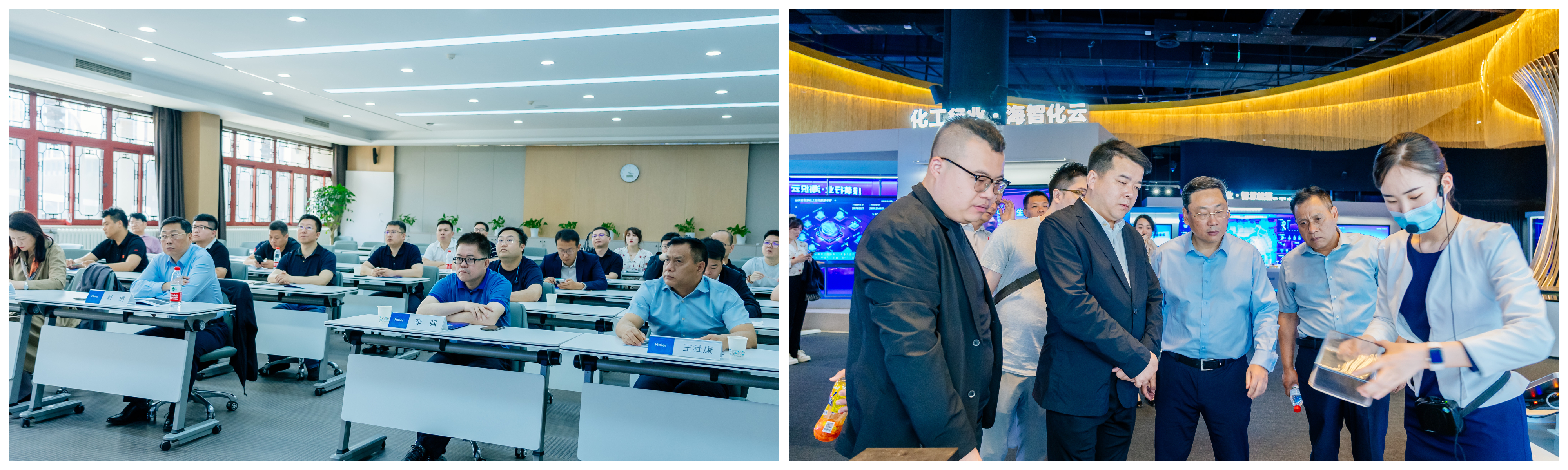 13日,学员们走进海尔集团参观交流。上午,在海尔谦园由卡奥斯业务赋能总监张立英作《价值倍增工程-卡奥斯工业互联网最佳实践》专题报告。张总从对内和对外赋能两方面详细介绍了卡奥斯工业互联网平台。通过分析制造企业的痛点及瓶颈,引出数字化转型的方法路径的五要素,并建议企业在管理赋能中要有清晰的商业逻辑、数字化顶层架构的设计及明确数字化的突破。下午,在工作人员的带领下参观了海尔卡奥斯体验馆和海尔品牌文化馆,深入了解了海尔品牌的发展历程及企业的战略规划。大家了解到海尔从当年创造中国冰箱的金牌,到今天努力跻身世界500强,依靠的不仅是高效的精细化管理,更是海尔人战胜自我,创新进取的振奋精神。