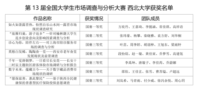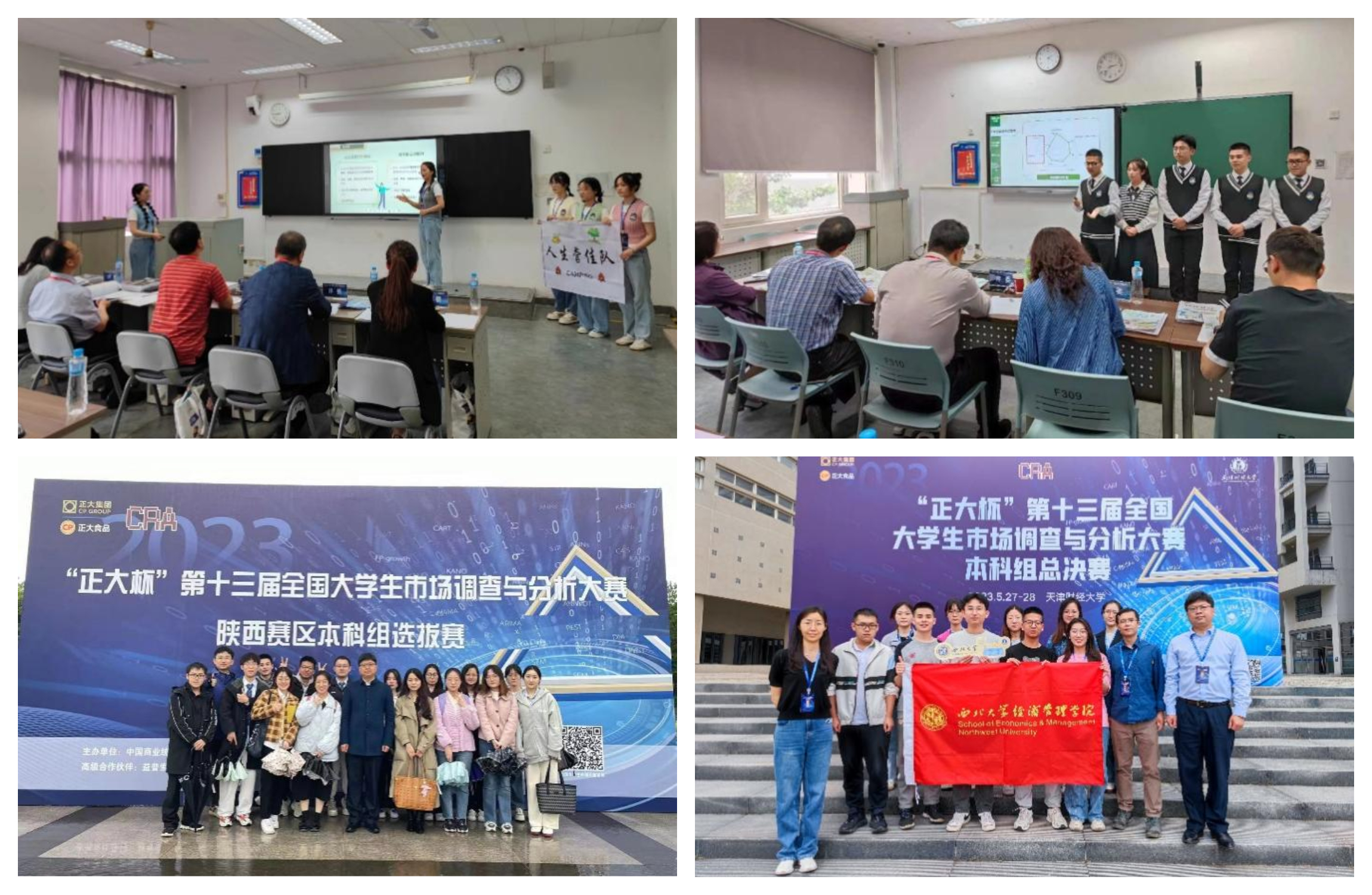 本次大赛自2022年10月启动以来,我院近160名学生报名参赛。学院由王莉、张苗、翁宇雷、焦晶、刘伟、李宗欣、南士敬、马聪等老师组成指导团队,组织学生们进行理论知识网考、指导实践赛选题、调查问卷设计和实施、报告撰写和现场展示等多个环节,经过激烈的角逐,校内选拔赛胜出的7支队伍于2023年4月29日参加陕西赛区比赛,其中2支队伍在全省370支队伍中脱颖而出,以全省前两名的成绩晋级2023年5月27日—28日在天津财经大学举办的全国总决赛。此次大赛,我院报名人数、省赛名额数及所获奖项均创历史新高。王莉老师也被邀请作为省赛、全国赛的通讯评审和现场评委。经过多个比赛环节历时8个月的市调大赛活动圆满结束。