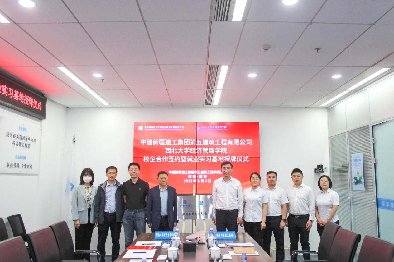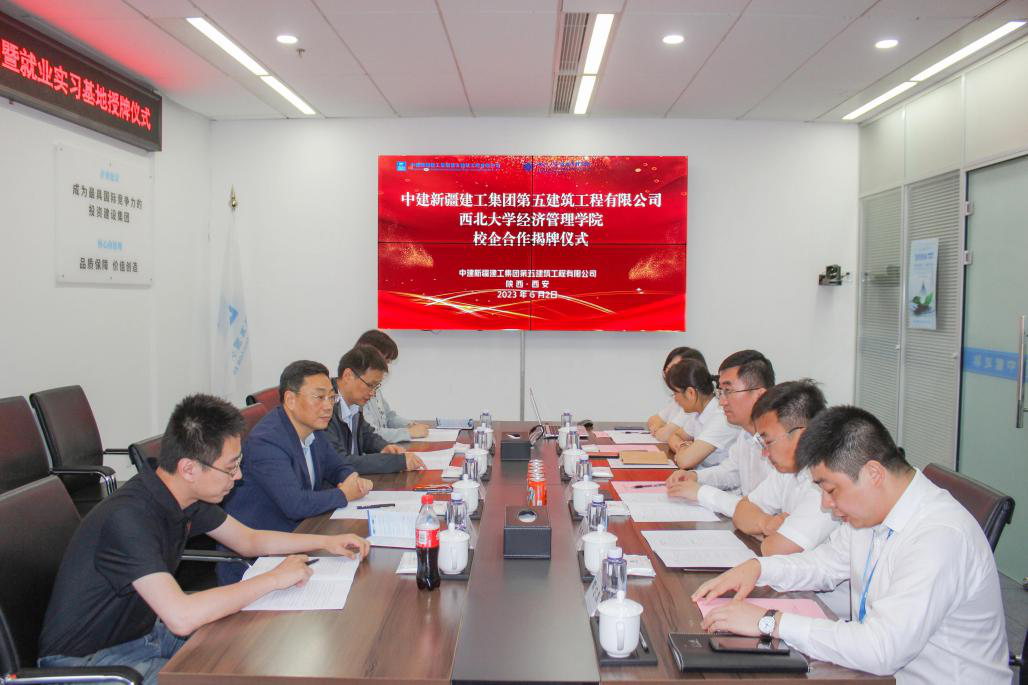 6月2日上午,我院党委书记杜勇一行前往中建新疆建工集团第五建筑工程有限公司进行校企合作签约暨就业实习基地授牌座谈会。中建新疆建工集团第五建筑工程有限公司党委书记、董事长薛孟斌,党委副书记、工会主席赵芸,副总经理、总工程师张宇飞,人力资源部经理陈坤,陕西分公司副经理赖达军参加座谈会。