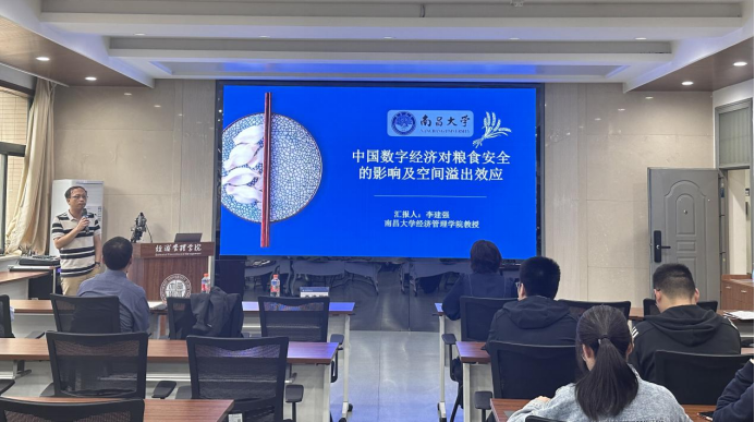 5月25日,yl7703永利集团“名家讲坛”学术系列讲座在经管学院8318会议室成功举办,该讲座由yl7703永利集团社科处与yl7703永利集团主办,由学院副院长岳利萍教授主持,特邀南昌大学李建强教授主讲“中国数字经济对粮食安全的影响及空间溢出效应”的学术讲座。学院教师,博、硕士研究生,本科生80余人参加了此次活动。讲座开始前,岳利萍教授向大家简要介绍了李建强教授的学术成就,并对李教授所讲主题做了简要说明。