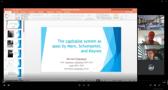 本次活动邀请贝尔纳·沙旺斯(Bernard Chavance)教授,通过线上方式,作了题为“The capitalist system as seen by Marx, Schumpeter, and Keynes”的讲座。贝尔纳·沙旺斯(Bernard Chavance)教授是经济制度比较分析和制度经济学领域世界知名专家,巴黎第七大学(现巴黎西岱大学)名誉教授,曾任法国社会科学高等研究院院长,已撰写、编辑或翻译十余部比较经济制度和制度经济学领域著作,其著作被翻译为英、俄、日、中文,传播广泛,国际影响深远。与我院合作获批科技部国家外专局“高端外国专家引进计划”。