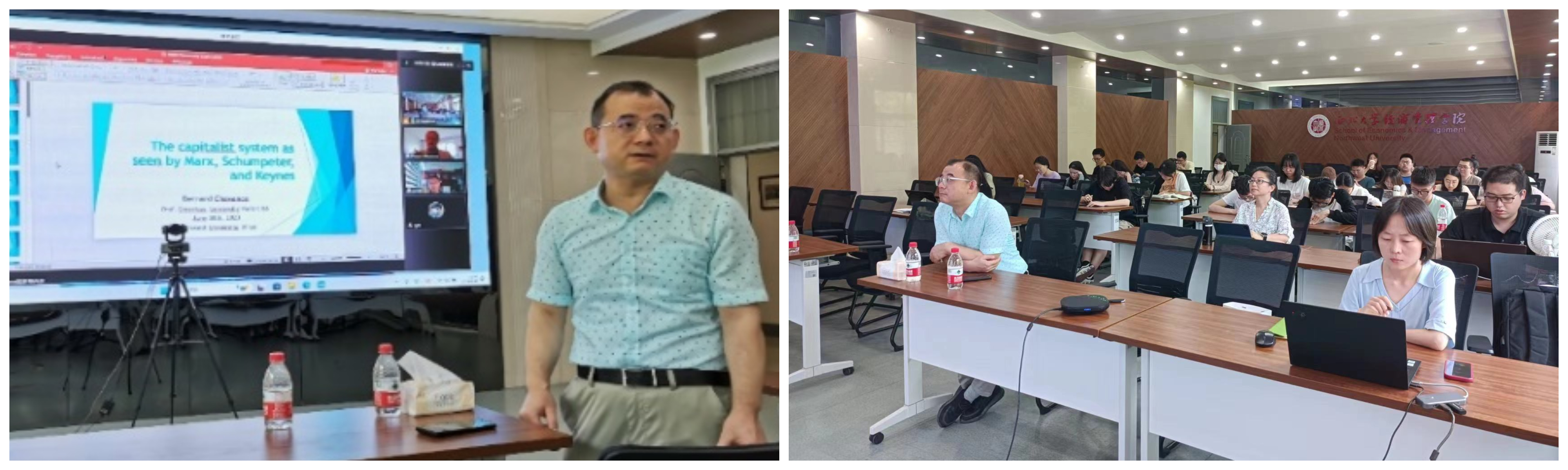 沙旺斯教授对马克思、熊彼特和凯恩斯三位经济学家的代表作以及其主要思想进行了讲解。随后我院师生与贝尔纳·沙旺斯(Bernard Chavance)教授教授进行了提问交流。最后,高煜教授对此次讲座进行了总结,对沙旺斯教授表示了感谢。本次活动圆满结束。