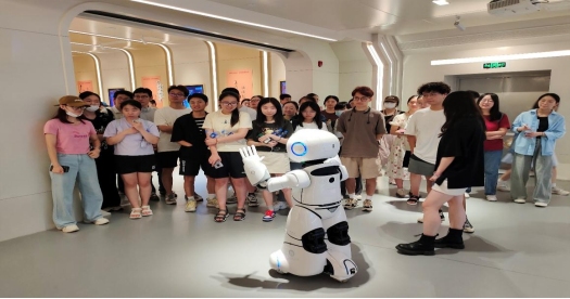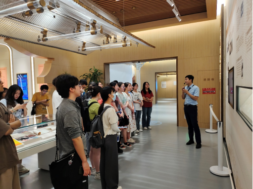 首先,同学们在开源证券投教基地讲解员的带领下,通过基地内富有年代感的文字、浸润着新中国证券发展历史的实物股票感受了世界经济发展和新中国证券市场发展的波澜壮阔,尤其是革命年代共产党员利用戏院获取情报的中国红色金融历史深深吸引同学们驻足。同时,机器人的互动体验让同学们身临其境地感受了科技对金融和社会的影响。