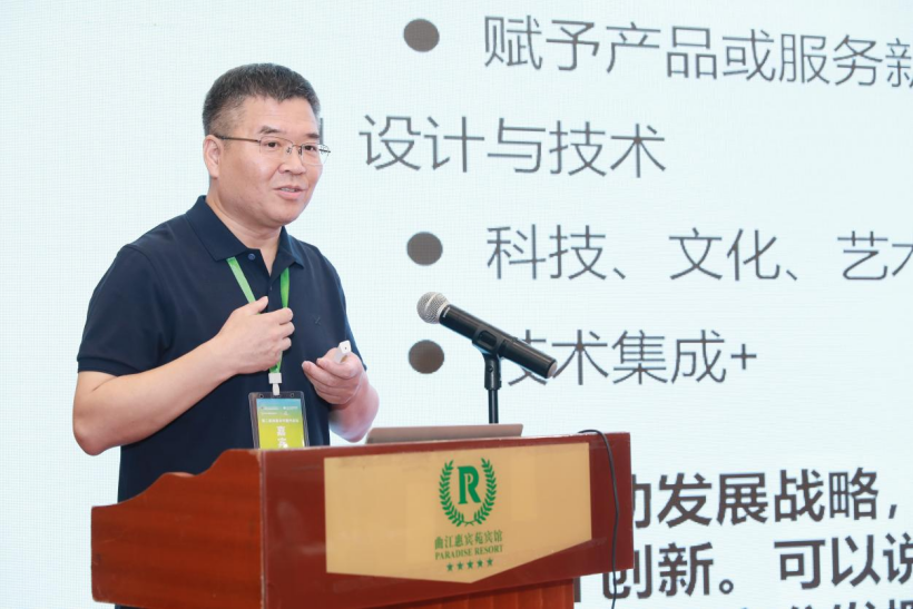 在主论坛1第二阶段中,尚浓智库秘书长,印迹乡村创意设计大赛组委会秘书长袁学国研究员作了题为《设计驱动乡村振兴之路》的主旨报告。他认为,设计是实施创新驱动发展战略的重要抓手,创意设计服务业是产业融合的新动能,创意设计赋能乡村振兴的根本矛盾,因此,应该把创意设计作为乡村振兴的重要举措来抓,并简要分析了创意设计服务乡村的五大模式:传统村落发展、艺术乡村发展、综合项目开发、创意农业、乡村文创基地。