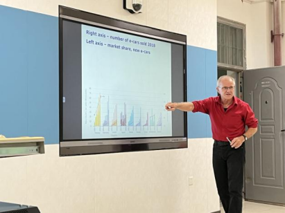在讲座环节,Anders Ekeland教授首先通过介绍电动汽车的发展历程,指出近年来挪威在该领域不断刷新历史记录,尽管自然条件并不适合汽车电动化发展,但近年来基本实现了全面电动化,成为全球新能源汽车渗透率最高的国家。接着教授根据挪威在电动汽车行业领域异军突起的经验教训提出其他国家可以采用税收、补贴等方法,从而更好地实现由化石燃料车向电动汽车的过渡。此外,Anders Ekeland教授认为电动汽车的发展存在一个巨大的环境问题,电动车电池生产以及废旧电池的处理等环节如何做到“绿色”同样值得关注,建议相关研究人员通过挖掘可再生能源的潜力来改进生产技术。最后,教授分享了电动车行业最新发展:随着电动汽车时代的到来,生产电动车电池所需的稀有金属需求增大,这势必会给特定稀有金属储量丰富的国家带来新的发展机遇,同时也产生其他的经济和社会问题。