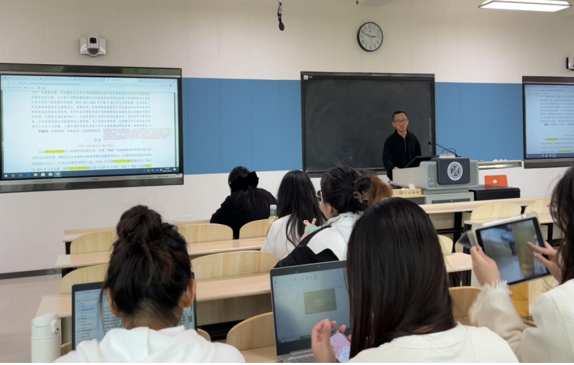 在交流讨论环节,同学们与南士敬老师和葛鹏飞老师进行了积极的学术探讨,两位老师对同学们提出的问题进行了详细的回答。两位老师的点评和建议对全场同学的论文实证与写作带来了极大启发。他们深入浅出的分析方式,以及对文章细节的针对性建议,能够帮助同学们更好地理解论文写作的要点,并在未来的学术研究中更好地应用和实践。
