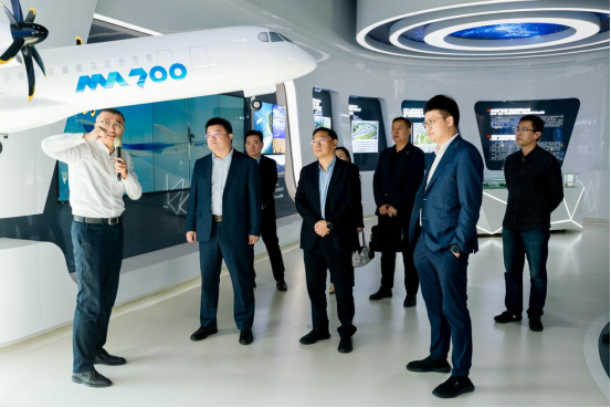 仪式前,富阎产业合作园区领导陪同我院一行人员参观民机展厅、西非民机研发中心项目。