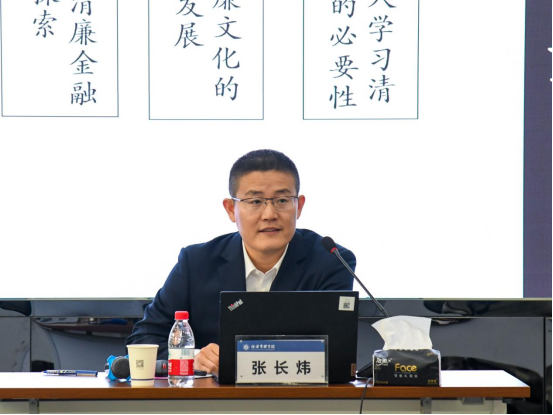 讲座中张长炜从青年人学习清廉文化的必要性、清廉文化的历史和发展、近年来相关工作的开展情况、青年提升清廉涵养的意义和防诈骗金融知识五个方面进行讲解。他表示,廉政文化在中华文明史上源远流长,是廉洁理论和行为方式及其相互关系的文化总和,博大精深的中华文化本身就是一座丰富的廉政文化资源宝库。他通过介绍金融风险案例,详细陈述恒丰银行近年来在清廉金融文化建设方面的探索,他强调在座的各位同学作为新时代青年,更应让清廉自律成为青春最鲜亮的底色,守好一个“法”字、破除一个“欲”字、慎用一个“比”字、盯住一个“微”字、做到一个“学”字、落到一个“干”字,努力成为眼里有“光”、心中有“秤”的新时代干事又干净青年。