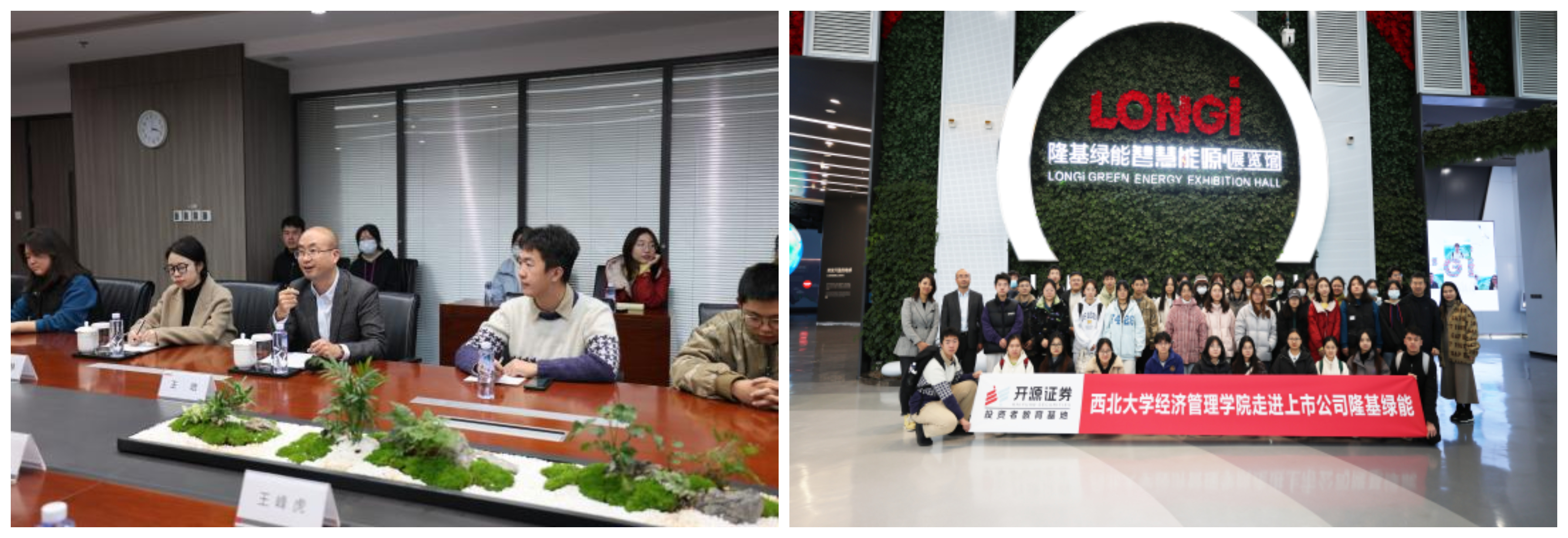 我院开源证券“证券投资实务”课程学员于11月15日赴隆基绿能进行访学。“证券投资实务”课程是开源证券根据与上交所、陕西证监局、yl7703永利集团国民教育进高校四方协议开设的本科生选修课程,师资由开源证券部门领导担任,课程专门设置了上市公司访学活动。