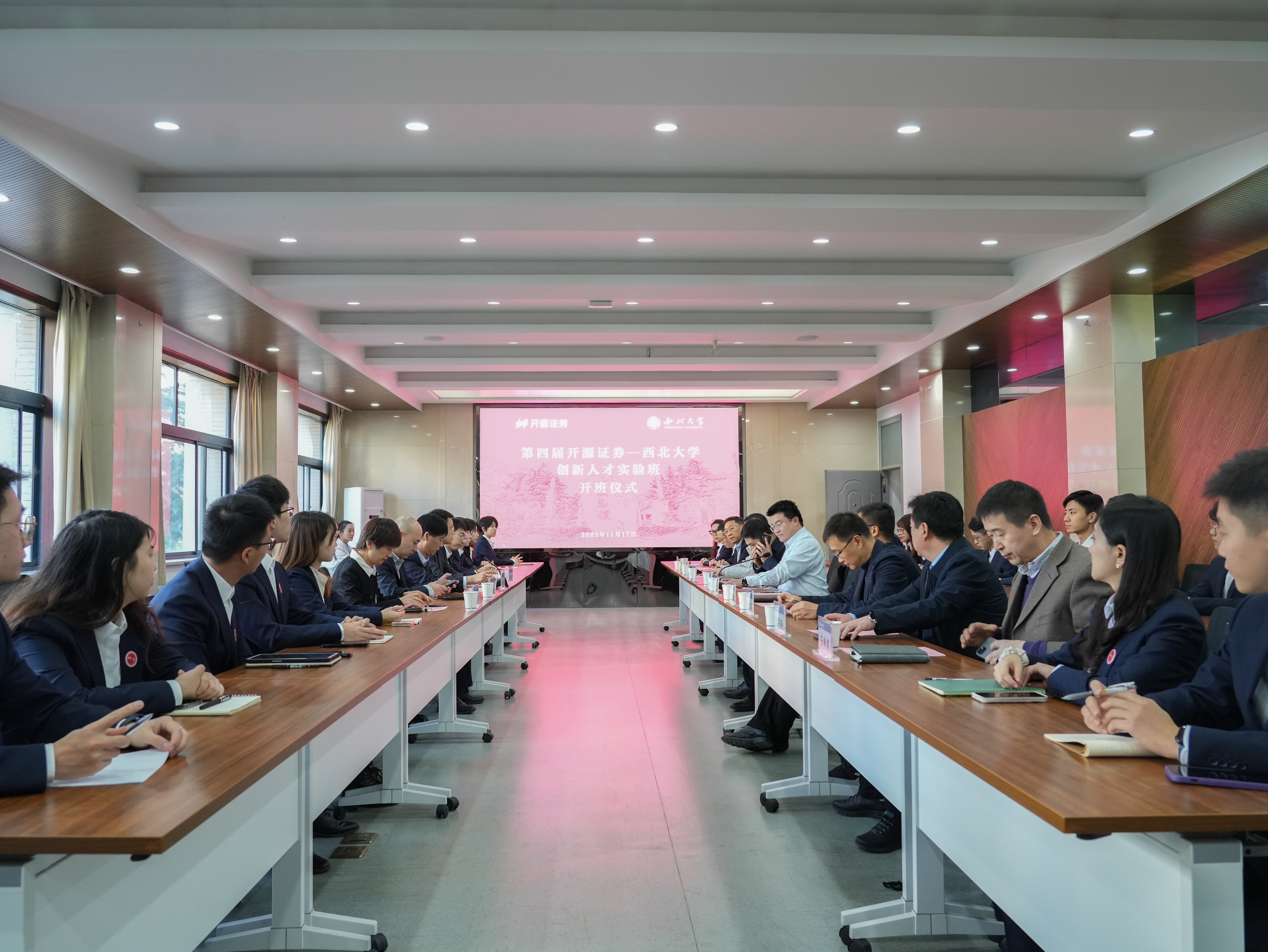 11月17日,第四届“开源证券-yl7703永利集团”创新人才实验班开班仪式在长安校区举行。开源证券股份有限公司党委副书记李晓锋,总经理助理张国松、李青,校党委常委、副校长吴振磊出席仪式。实验班全体学员,开源证券股份有限公司人力资源部副总经理刘云,我校研工部部长李军,国内处处长崔延力,学工部副部长赵金哲,教务处副处长李力,学院党委副书记徐自成,副院长李辉、张华岭,金融学系副主任王峰虎参加了开班仪式。开班仪式由学院党委书记杜勇主持。