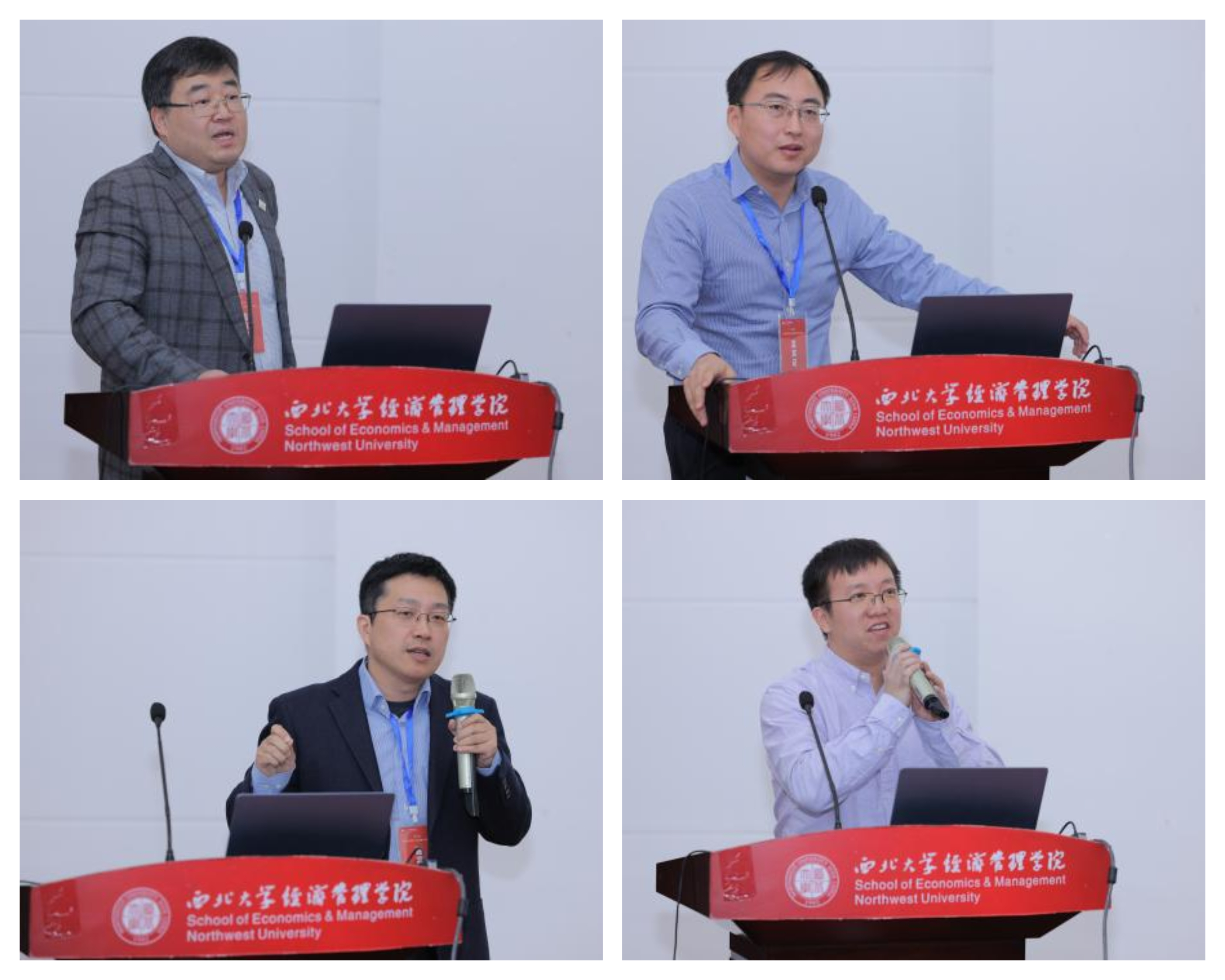 论坛第一阶段的主旨演讲由马莉莉教授主持,复旦大学李楠教授、中国人民大学刘瑞明教授、北京大学王勇教授、北京师范大学张勋教授,先后做了题为《暴力风险分担与合约选择:基于近代东北地区乡村社会的考察》《Financing Constraints and the Deleveraging Paradox:Theory and Evidence from China》《战略性新兴产业融合与快速演进技术创新》《促进数字经济与实体经济深度融合》的主旨演讲。