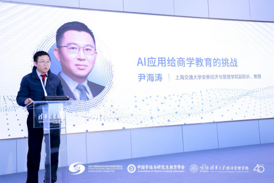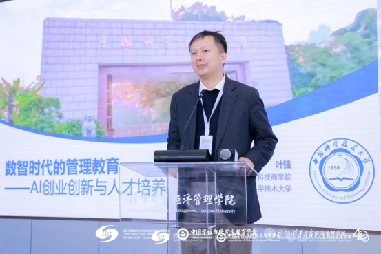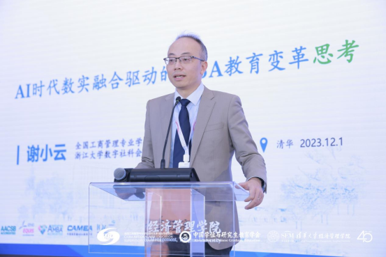 全国MBA教指委委员、浙江大学管理学院常务副院长、党委副书记谢小云教授作了题为"AI时代数实融合驱动的MBA教育变革"的报告;上海交通大学安泰经济与管理学院副院长尹海涛教授的报告主题是“AI应用给商学教育的挑战”;全国MBA教指委委员、中国科学技术大学科技商学院执行院长、管理学院执行院长、国际金融研究院院长叶强分享了“数智时代的管理教育”;全国MBA教指委副主任委员、复旦大学管理学院院长陆雄文教授的分享主题是“AI时代的管理学院未来”。