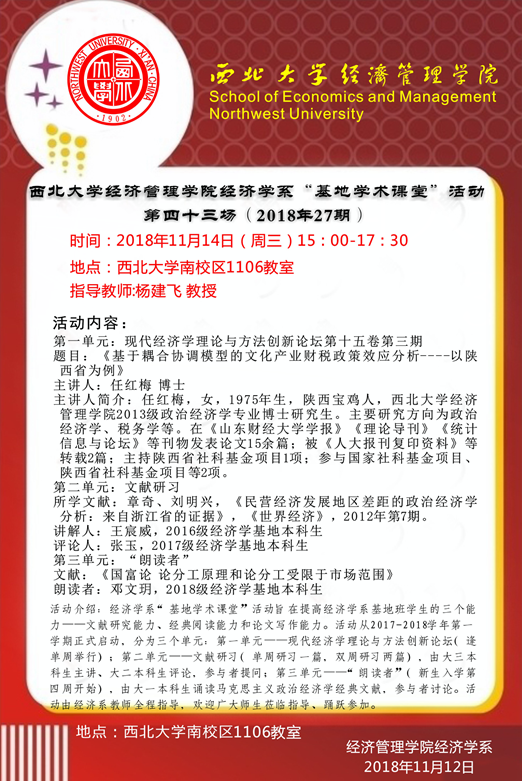 上一条:陕西省外国经济学说研究会2019学术年会暨换届大会征稿通知