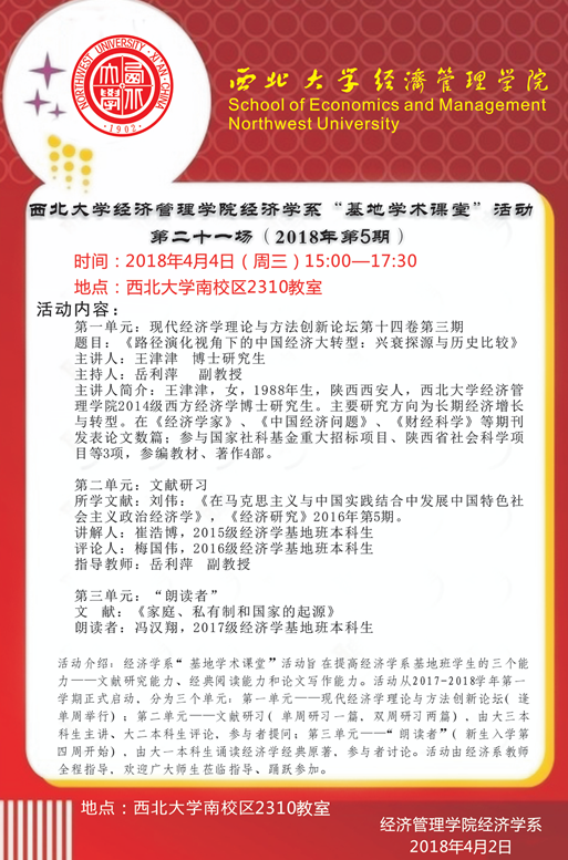 yl7703永利集团经济学系“基地学术课堂”活动第二十一场(2018年第5期)