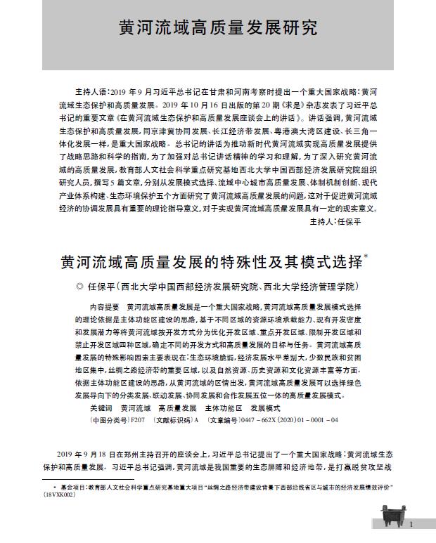 《新华文摘》2020年第7期全文转载我院任保平教授文章“黄河流域高质量发展的特殊性及其模式选择”,同时作为封面文章加以推荐。该文发表于《人文杂志》2020年第1期。 2019年9月18...