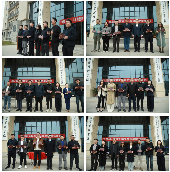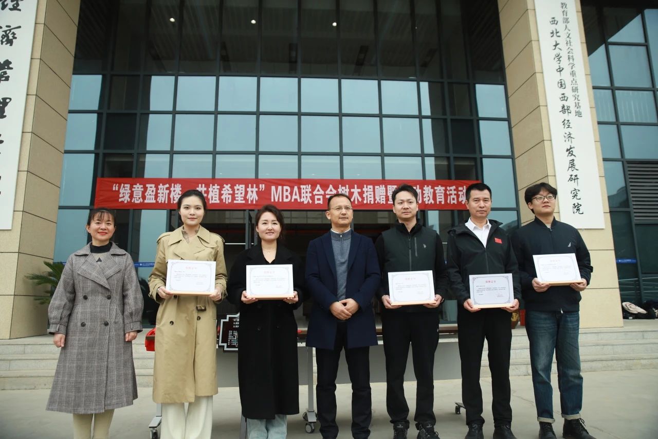 李伟、李剑利、崔延力、宁岗、刘博、杨军良分别向MBA捐赠代表逐一颁发树木捐赠吊牌。