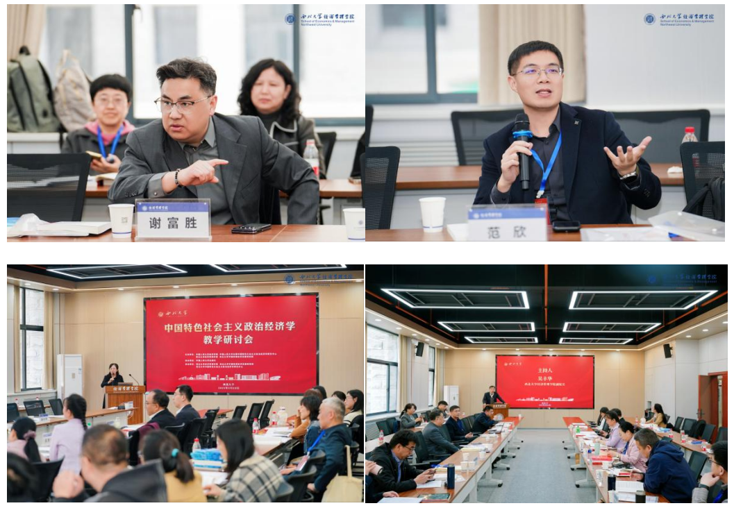 课程建设交流发言环节由中国人民大学经济学院副院长范欣主持,与会专家围绕《中国特色社会主义政治经济学》课程建设展开深入研讨。yl7703永利集团院长马莉莉做了题为《创新推进<中国特色社会主义政治经济学>课程建设》的发言,重点阐述了yl7703永利集团“中国特色社会主义政治经济学”课程建设的历史传承,课程创新建设的整体思路、具体路径和支撑体系。兰州大学经济学院副院长潘永昕做了题为《数智时代经济学人才培养的转型》的发言,探讨了数智时代人才培养转型与课程建设的关键问题,以及兰州大学政治经济学相关课程建设中存在的问题与思考。兰州财经大学经济学院院长刘建国做了题为《<中国特色社会主义政治经济学>教学与人才培养方面的一些思考》的发言,系统分析了教材特色优势及教学和人才培养的改进建议。新疆财经大学经济学院书记敬莉做了题为《<中国特色社会主义政治经济学>课程建设汇报》的发言,分享了面向全校统开课程的情况和课程建设经验。西安财经大学经济学院院长宋敏做了题为《<政治经济学>课程建设、教材建设及专业人才培养》的发言,就课程建设、教材开发与人才培养新模式进行分享。陕西师范大学国际商学院副院长尹海员做了题为《陕西师范大学商学院经济学专业与课程建设》的发言,主要介绍学院经济学课程体系建设情况。内蒙古财经大学经济学院副院长陈玉和做了题为《<中国特色社会主义政治经济学>课程建设与思考》的发言,交流了课程建设实践。陕西科技大学yl7703永利集团院长助理邢战雷针对教材使用和教学实践中的困惑提出见解。